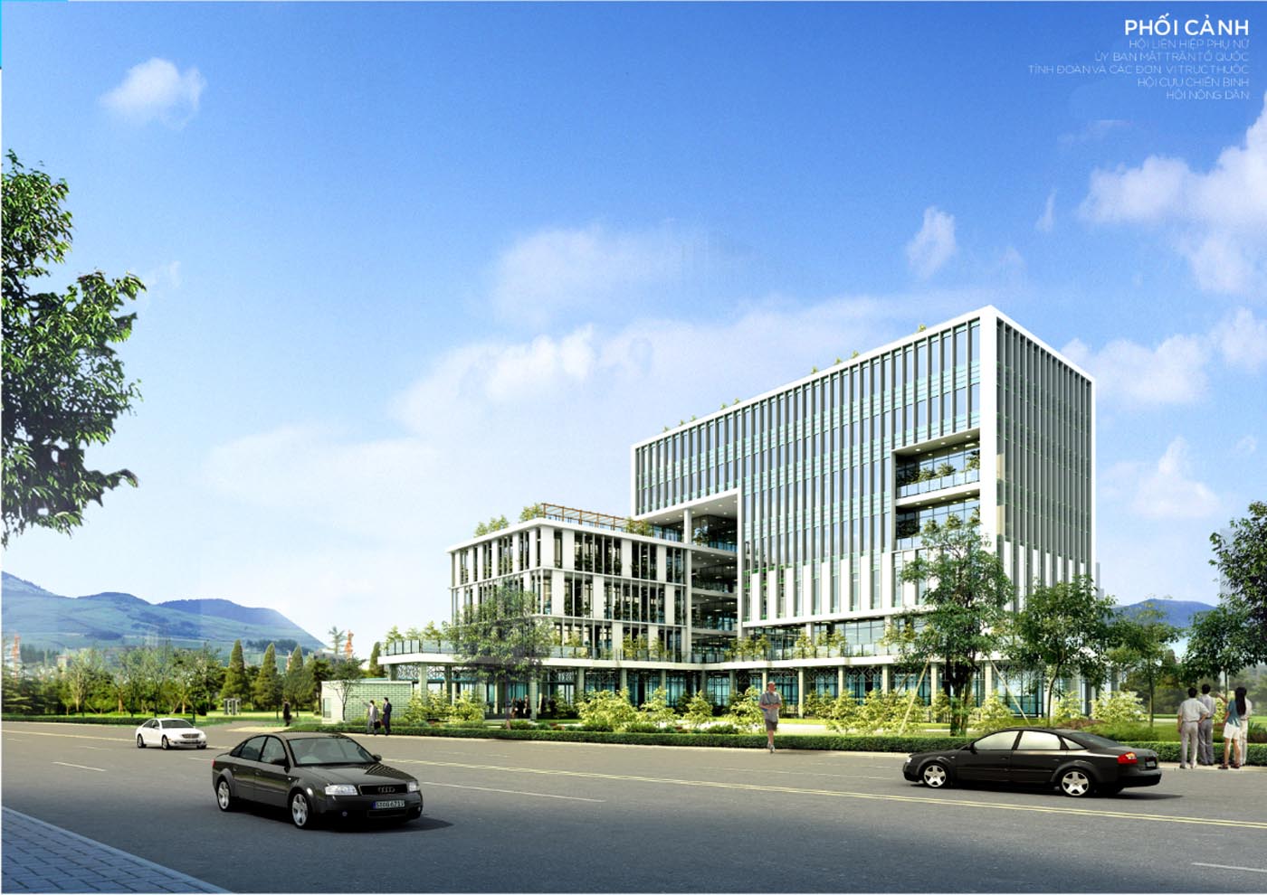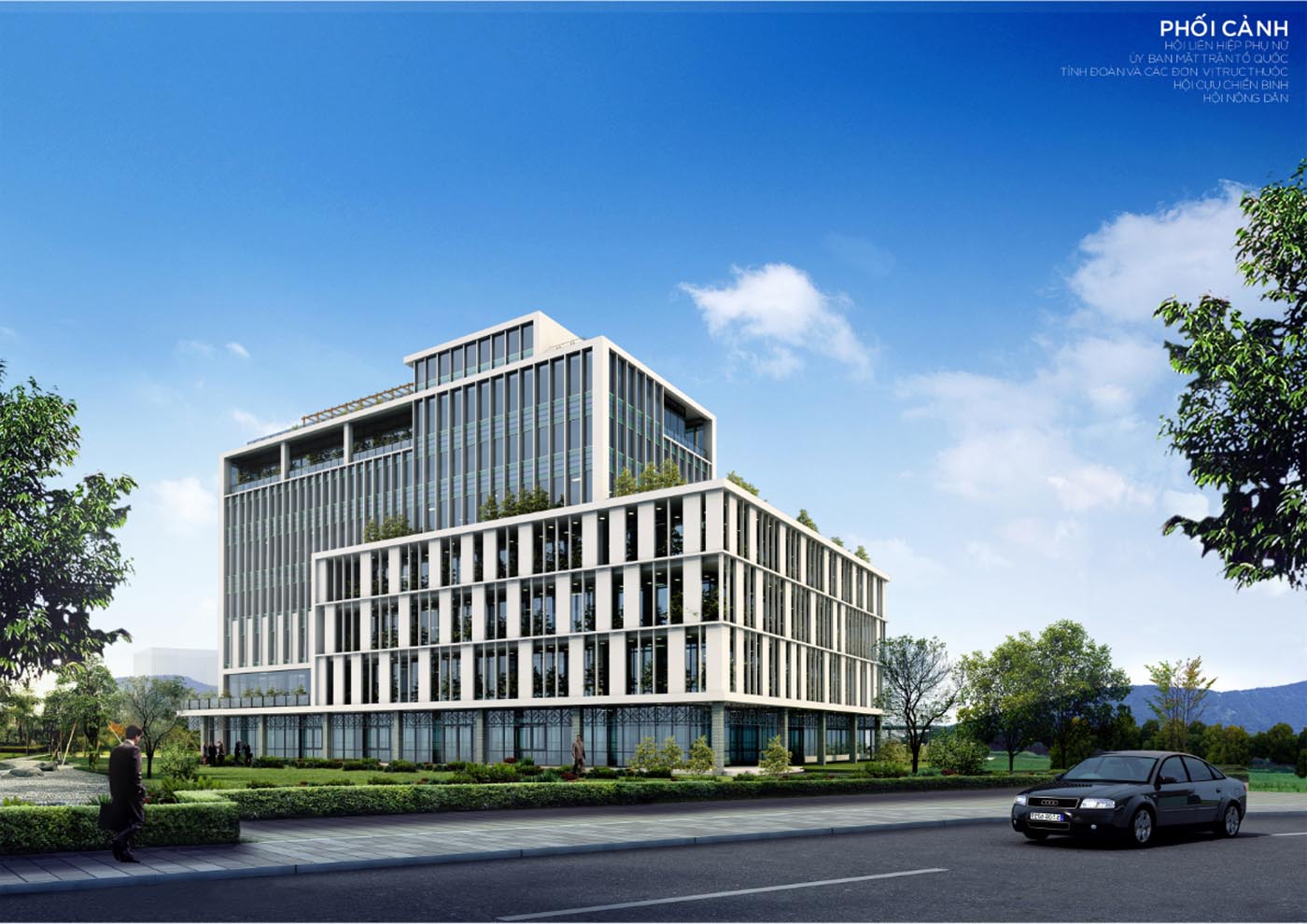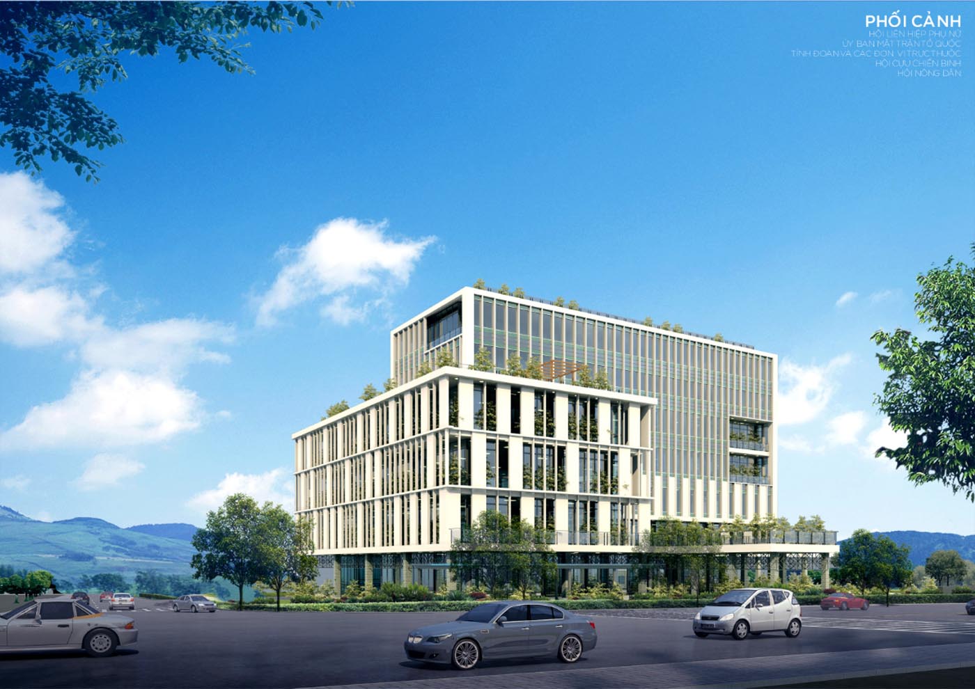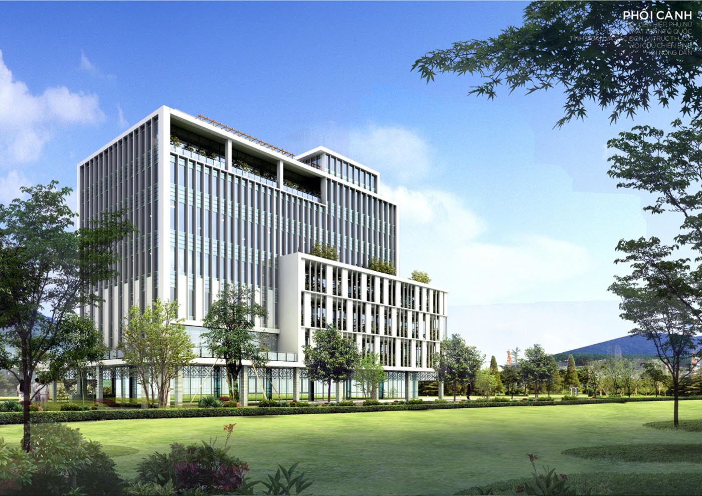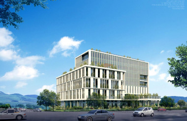 Hình khối kiến trúc thiết kế đơn giản, hiện đại với các mảng đặc rỗng rõ ràng được đan xen với không gian xanh tạo nên vi khí hậu hài hòa cho tòa nhà cũng như giảm cảm giác nặng nề của các khối bê tông. Các mảng cây xanh tạo cảm giác gần gũi, thân thiện tạo cái nhìn thiện cảm hơn đối với các công trình hành chính công quyền hiện nay.