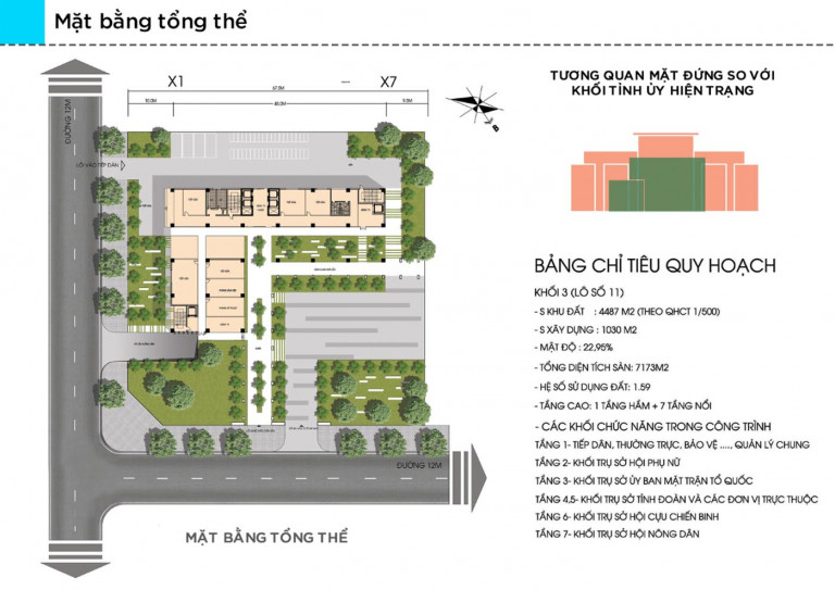 - Khu đất lập dự án tại lô đất số 11, có chức năng là Trụ sở làm việc. Vị trí công trình phù hợp với quy hoạch trung tâm hành chính thuộc khu đô thị mới Đề Thám.