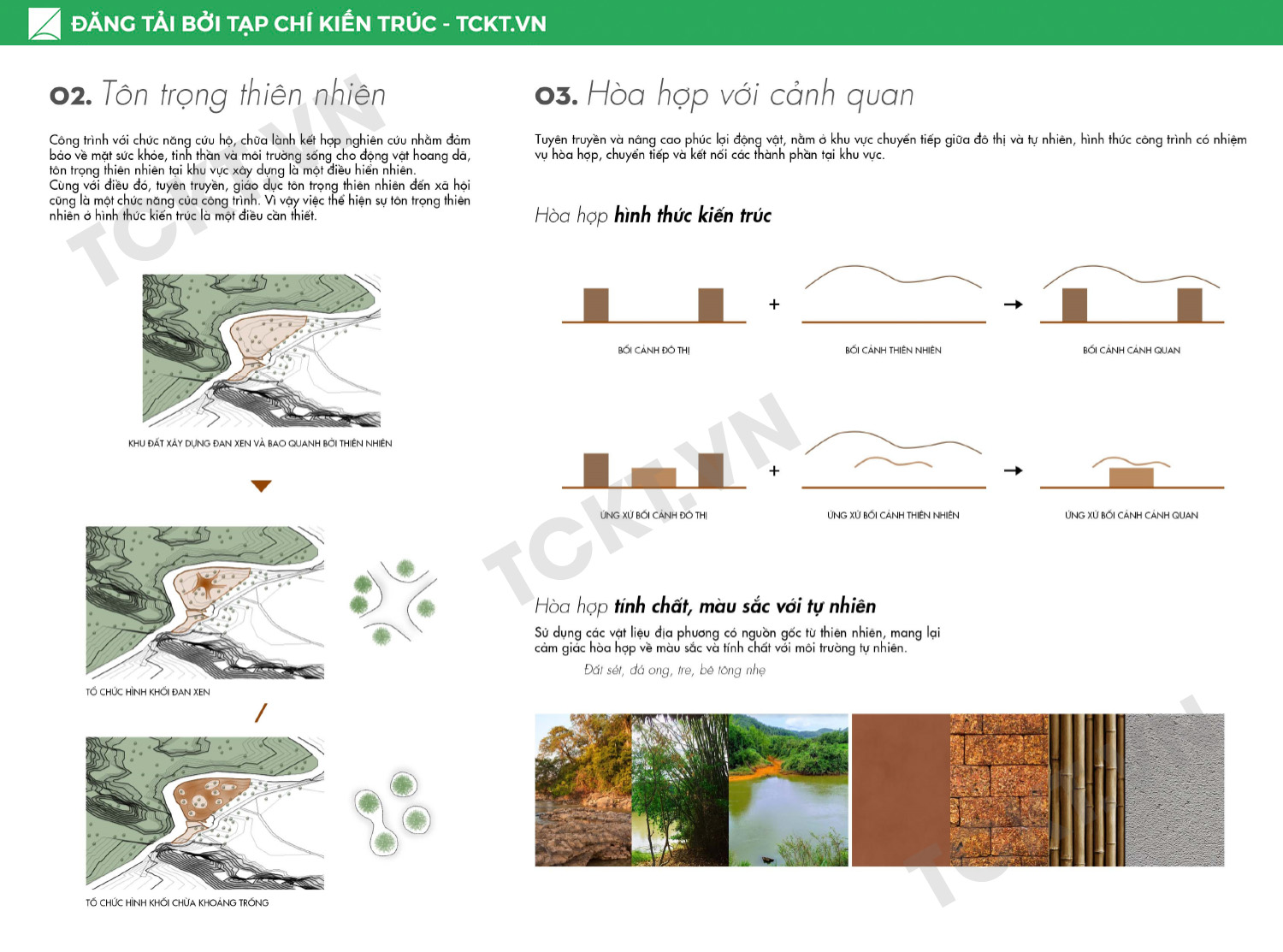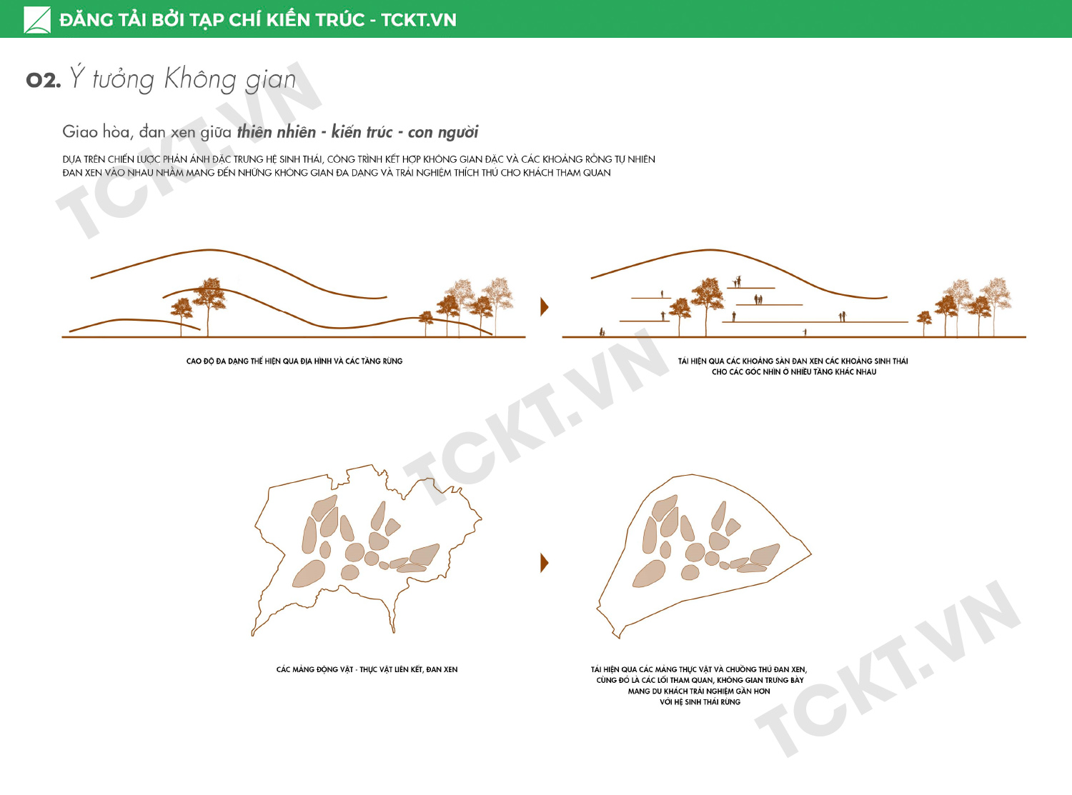 Nằm trên khu đất giao hòa giữa rừng và đô thị, khu đất được bao quanh bởi thiên nhiên và chỉ tiếp xúc với dân cư ở mặt hướng Tây. Với sứ mệnh chữa lành cho động vật hoang dã, kết nối, chuyển tiếp giữa không gian rừng và rừng, đô thị và thiên nhiên, tái hiện lại hệ sinh thái của Nam Cát Tiên cùng giao hòa với hệ sinh thái đô thị là chiến lược thiết kế chính của công trình. Từ đó, công trình trở thành một với các thành phần tại vị trí xây dựng, cùng chung sống, cùng phát triển trên cơ sở tôn trọng, bảo vệ ranh giới nên có giữa con người và động vật.