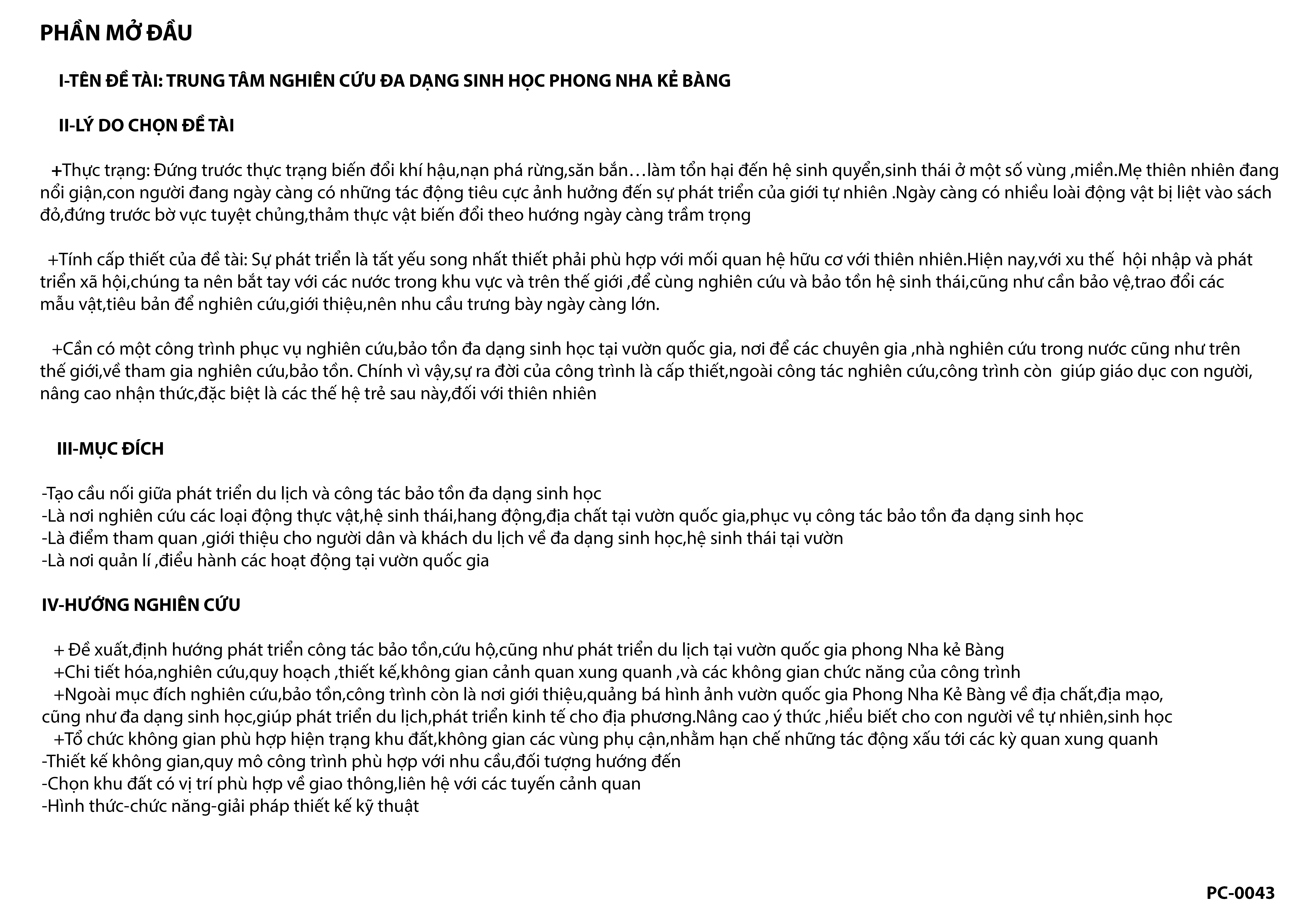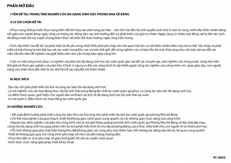 - Đồ án: Trung Trung tâm nghiên cứu và giới thiệu đa dạng sinh học Phong Nha – Kẻ Bàng
