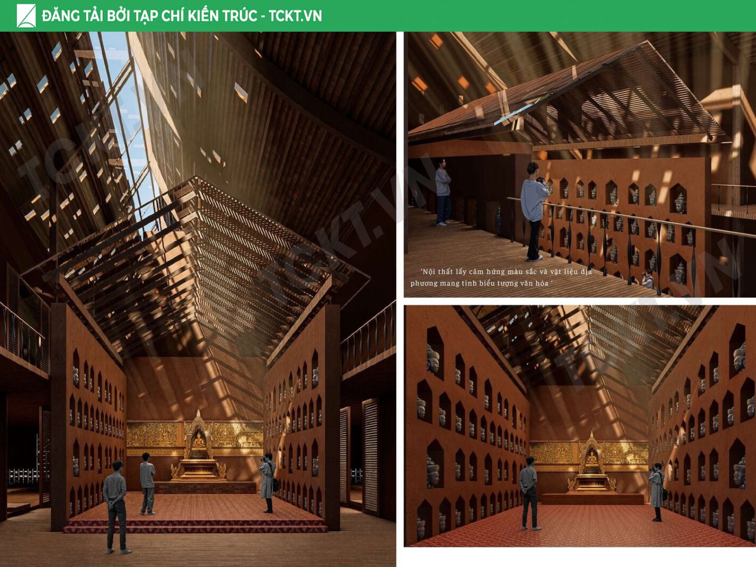 Không gian bên trong được thiết kế mở, thoáng đãng với nhiều ánh sáng tự nhiên và gió trời. Đây là nơi người dân và du khách có thể tìm hiểu, trải nghiệm văn hóa Khmer qua các hoạt động lễ hội, nghệ thuật, ẩm thực và làng nghề truyền thống. Công trình không chỉ là một điểm đến du lịch mà còn là nơi lưu giữ và lan tỏa giá trị văn hóa Khmer theo cách nhẹ nhàng, gần gũi và đầy tự hào.