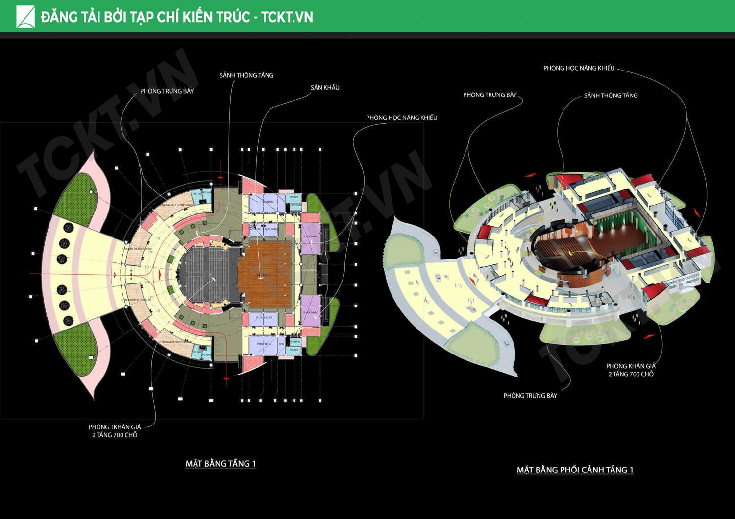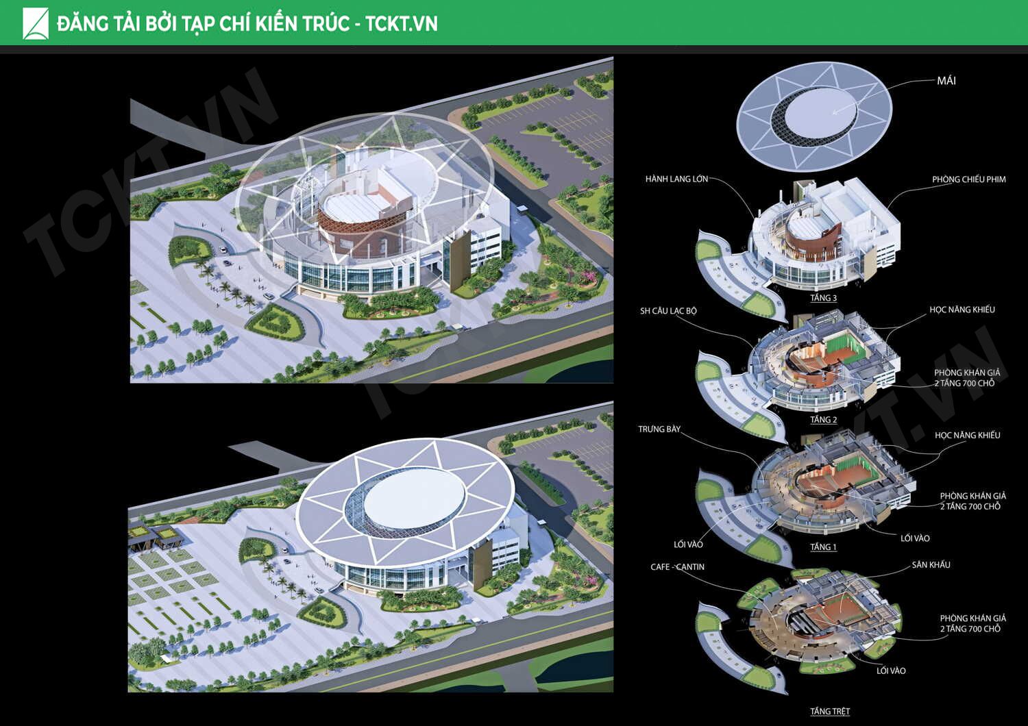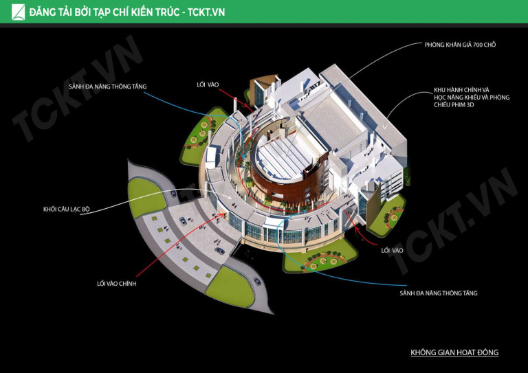 - Khối vòng thành thứ 3: Là lõi trung tâm, bao xung quanh lõi trung tâm là phòng khán giả 700 chỗ.