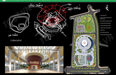 Công trình được tổ chức không gian theo ý tưởng gợi lại hình ảnh của Thành Cổ Loa (Thành Ốc) bao gồm 03 vòng thành theo hình đồng tâm: