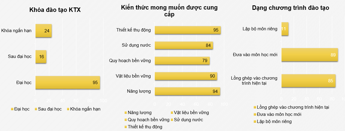 Thực tế tại Việt Nam hiện nay, trong chương trình đào tạo kiến trúc ở nhiều trường còn đang thiếu vắng những môn học thiết kế gắn với bền vững, kiến trúc xanh và tiết kiệm năng lượng. Hơn nữa, việc thay đổi chương trình khung được quy định bởi Bộ giáo dục và đào tạo là rất khó khăn. Có thể thấy việc đào tạo thiết kế kiến trúc gắn với bền vững, kiến trúc xanh và tiết kiệm năng lượng là cần thiết để chúng ta không bị tụt hậu so với các nước trên thế giới.