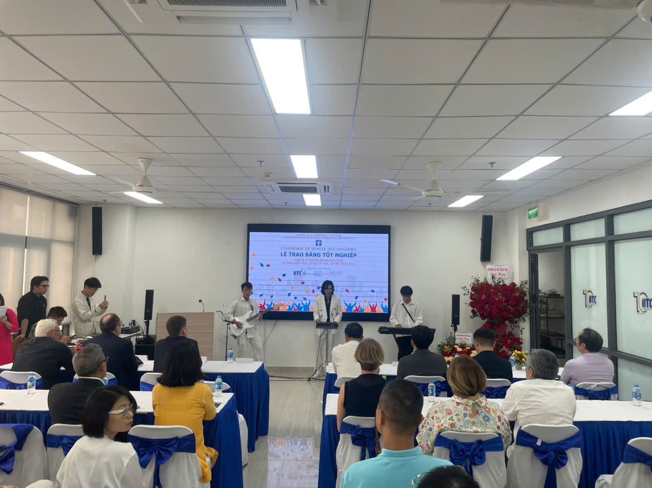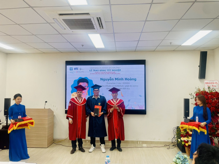 Điểm nhấn của buổi sáng là Lễ trao bằng tốt nghiệp cho sinh viên các chương trình Cử nhân Kiến trúc (DEEA) và Thạc sĩ Kiến trúc (DEA). Đây là dấu mốc quan trọng ghi nhận nỗ lực học tập và hội nhập quốc tế của các tân kiến trúc sư, đồng thời khẳng định chất lượng đào tạo theo chuẩn Pháp tại Việt Nam.