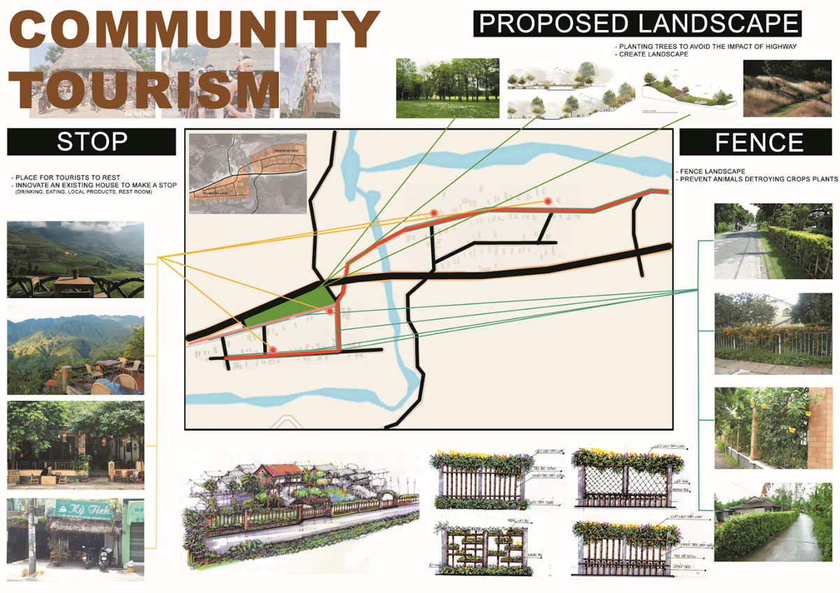 - Trong các chương trình workshop, SV hỗ trợ cộng đồng thiết kế cảnh quan các homestay, thiết kế nội thất, gợi ý đặt tên, thiết kế logo và những sản phẩm quảng bá thương hiệu cho các trung tâm du khách. Nhiều ý tưởng của SV đã được tiếp thu và triển khai tại các homestay;