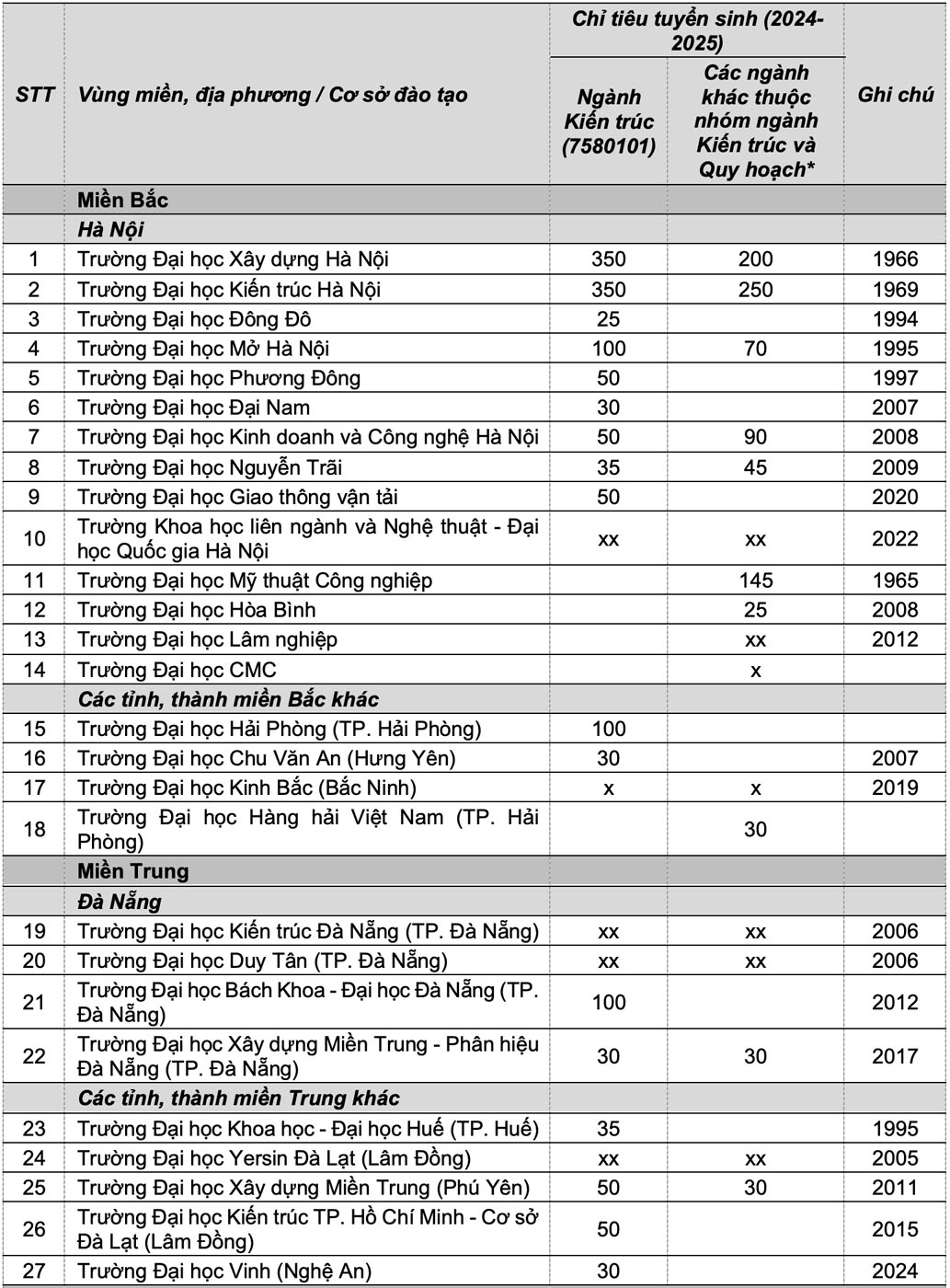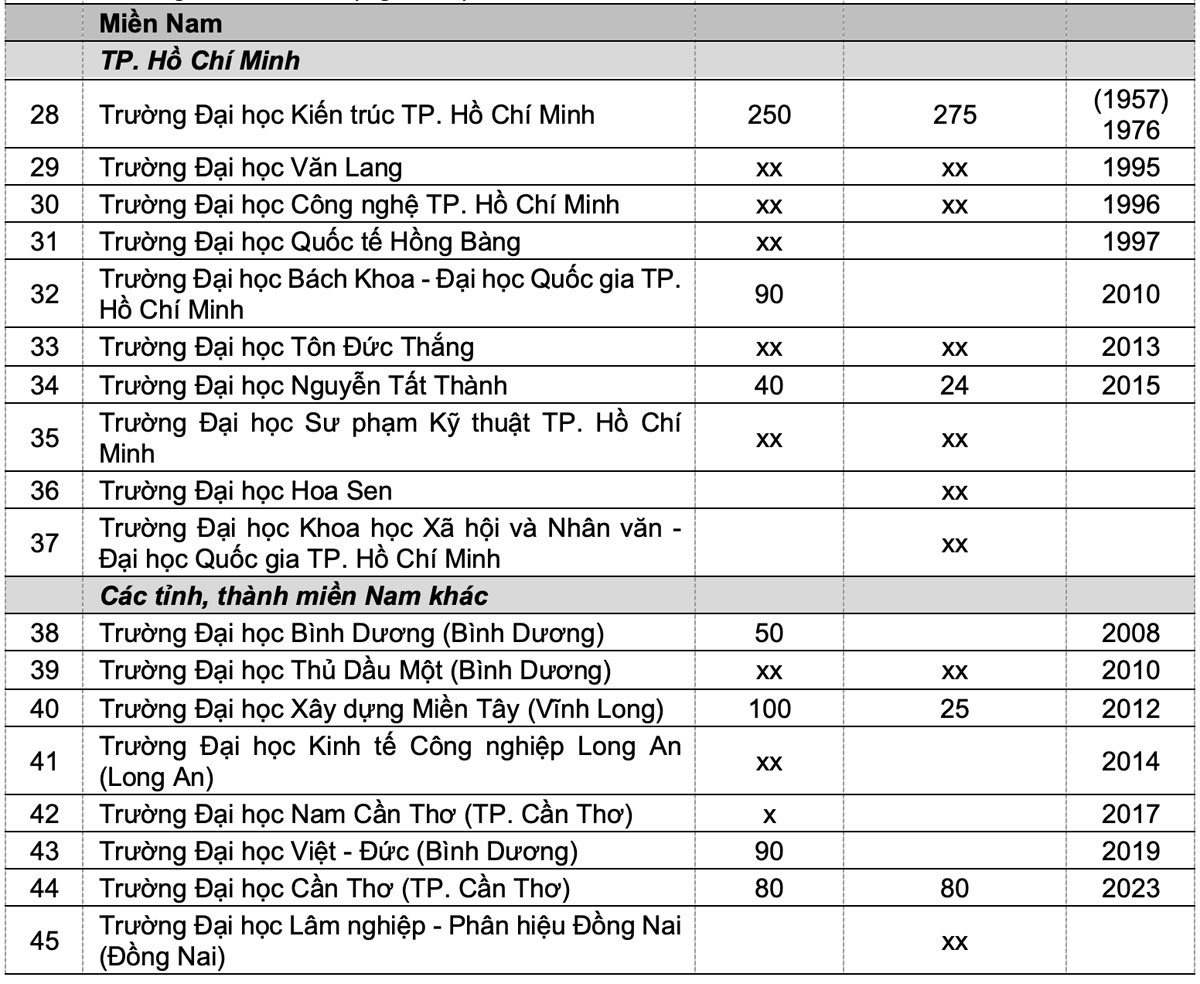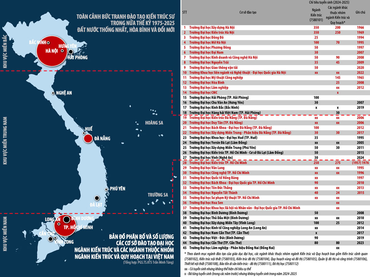 2. Bức tranh toàn cảnh các cơ sở đào tạo ngành Kiến trúc tại Việt Nam