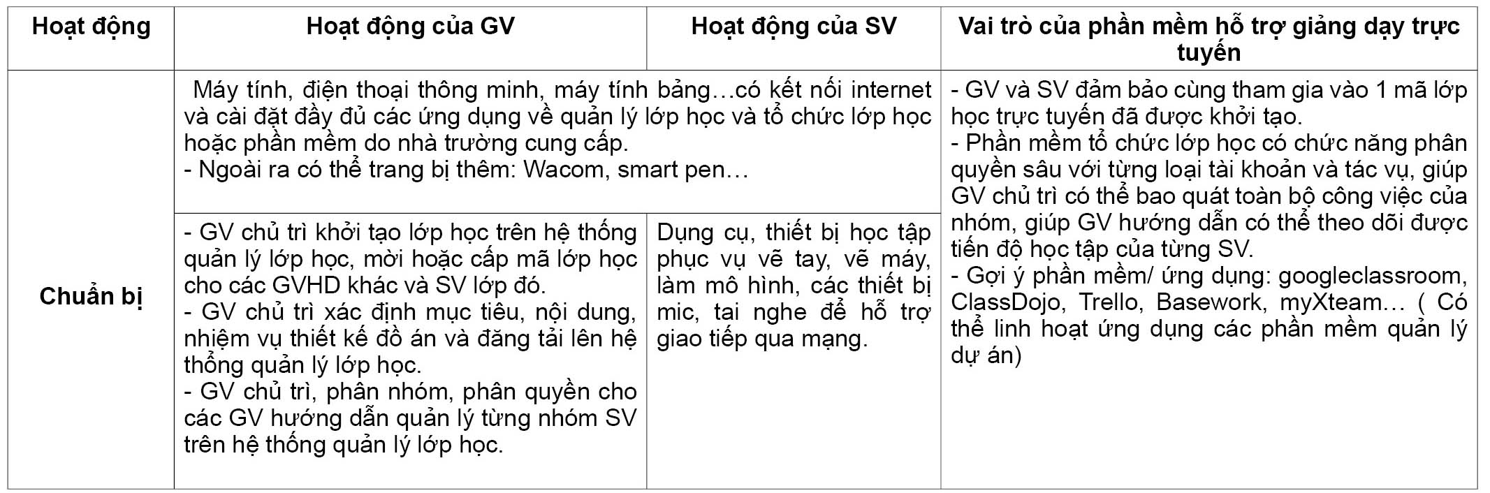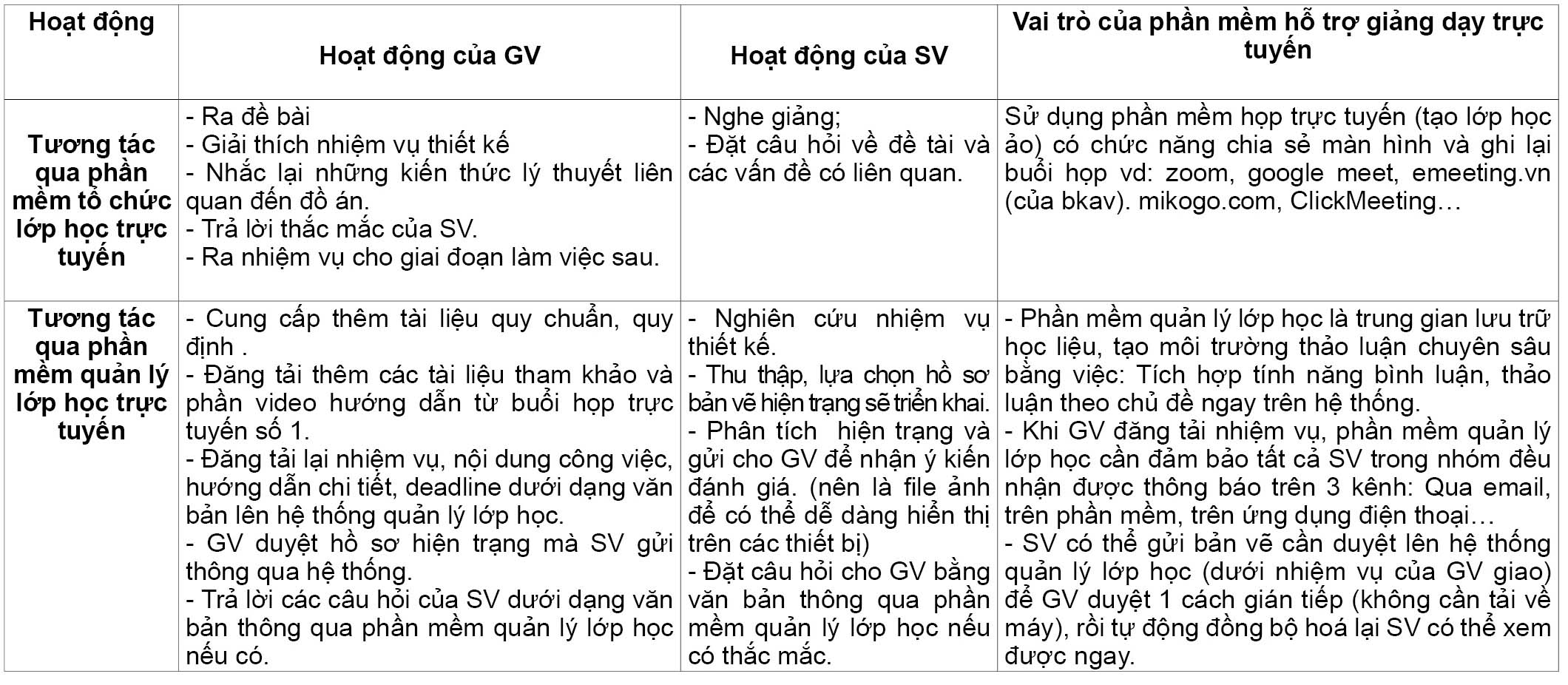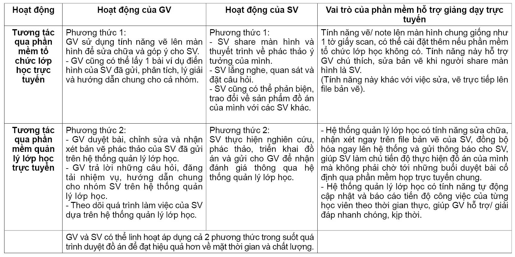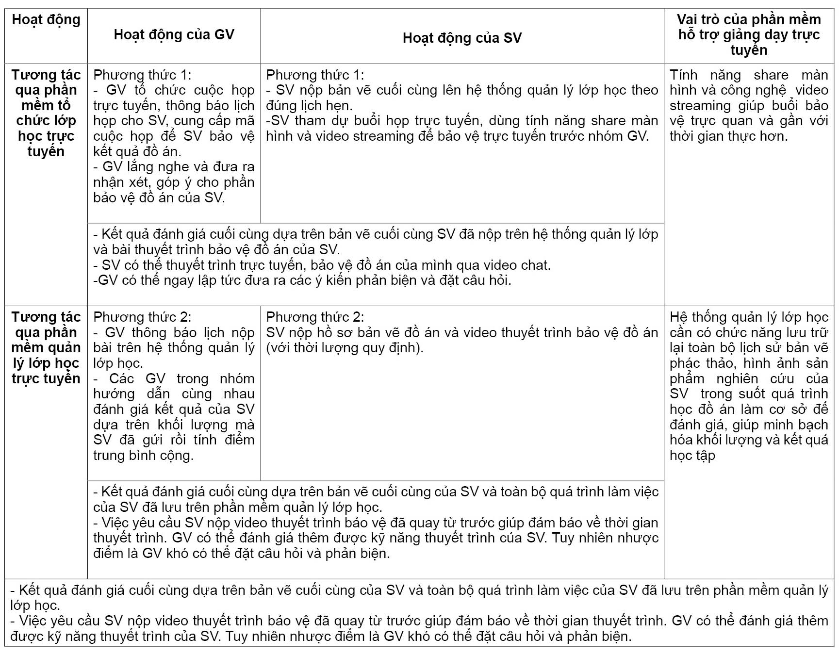 Tổng hợp các yêu cầu và giải pháp đối với hoạt động giảng dạy đồ án ứng dụng phương pháp giảng dạy trực tuyến hoàn toàn
