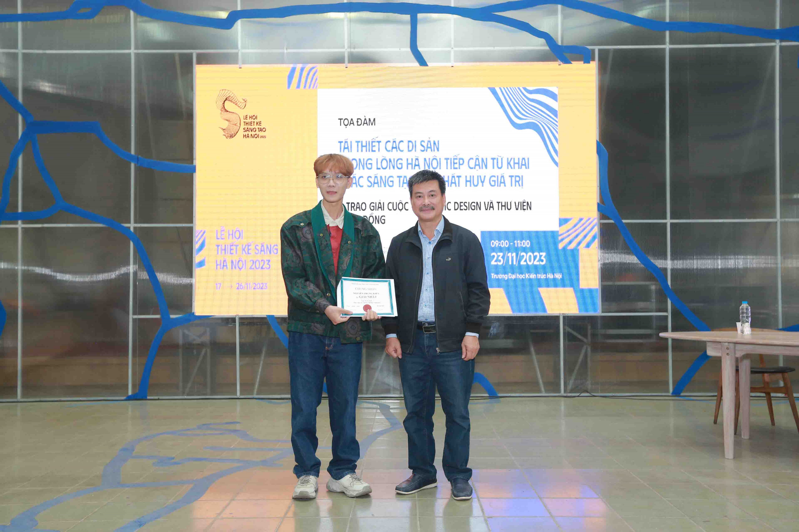 Cùng với việc trưng bày các đồ án trong triển lãm trong khuôn khổ Lễ hội sáng tạo Hà Nội 2023, Ban tổ chức Lễ hội cùng Khoa Kiến trúc – ĐH Kiến trúc Hà Nội đã vinh danh và trao giải thưởng cho các em SV. Những giải thưởng này không chỉ là những danh hiệu cá nhân mà còn là niềm tự hào cho cộng đồng kiến trúc nhằm thúc đẩy sự sáng tạo không ngừng trong các thiết kế kiến trúc, đặc biệt là trong lĩnh vực kiến trúc các nhà máy sản xuất công nghiệp.
