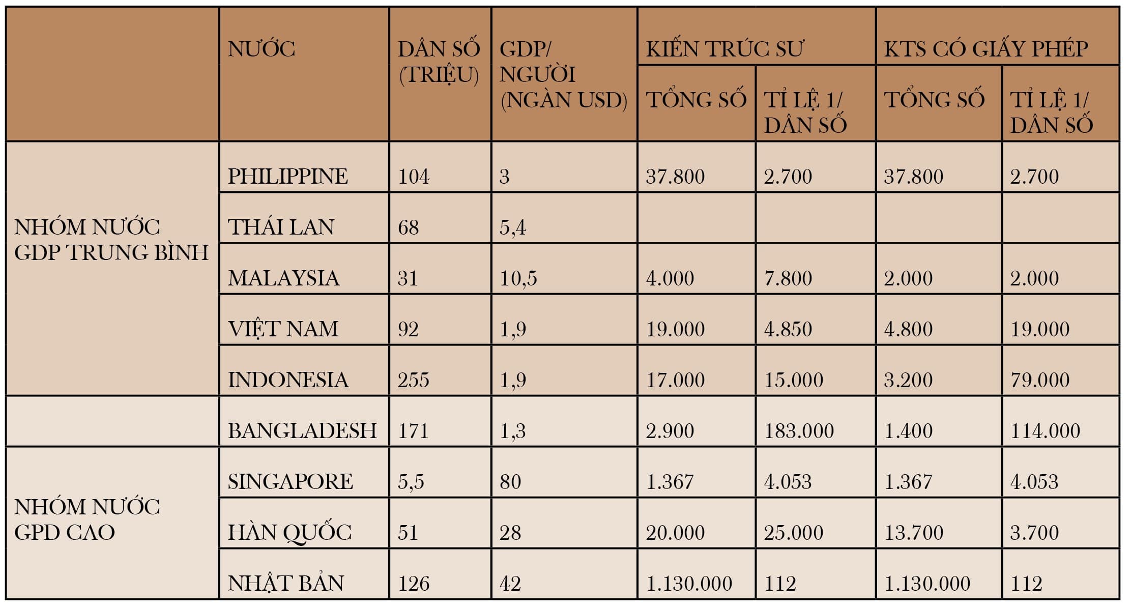 Thật bất ngờ khi báo cáo của Hội KTS Thailand cho rằng chỉ khoảng 20% KTS (có giấy phép) ở Thái là còn duy trì hành nghề chuyên nghiệp!