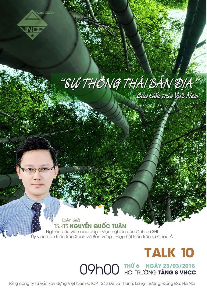 Bài nói chuyện cuả TS.KTS. Nguyễn Quốc Tuân giới thiệu một số kinh nghiệm bản địa trong thiết kế và xây dựng Xanh, bền vững ở châu Á, phân tích các yếu tố định hình kiến trúc bản địa là Khí hậu và môi trường xung quanh; Vật liệu địa phương; Kỹ thuật xây dựng truyền thống và đặc biệt là Văn hóa – lối sống. Thông qua những phân tích lỹ thuyết và cụ thể hóa bằng những thiết kế của các KTS trẻ Việt Nam, tác giả đưa ra lời giải cho câu hỏi: Phát triển công nghệ mới hay trở lại với sự thông thái bản địa?