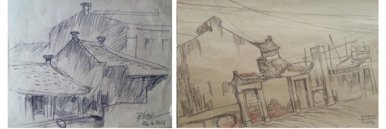 Gần đây, tôi có cùng một nhóm họa sĩ của Gallery39 về vẽ ở làng Cự Đà-Hà Đông cũ (nay thuộc Hà Nội). Chợt thấy rất ổn cái giải pháp kiến trúc mà người làng này thực thi trong hôm nay. Vẫn là con đường gạch quanh co xuyên làng. Vẫn là mùi tương và mùi miến truyền thống Cự Đà. Vẫn là những mái ngói âm dương nhà cổ xa xưa. Nhưng bên cạnh đó, là những nhà gác thời Pháp thuộc, nhà gác thời hôm nay. Khi bước vào căn nhà cổ có tuổi hơn thế kỷ mà vợ chồng họa sĩ trẻ thuê để ở và vẽ, thì mới thấy hết rằng căn nhà kiểu như thế này vẫn là hạt nhân của làng. Còn những nhà gác kia trong đó có cả nhà gác của dòng họ Trịnh của Trưởng Ban văn nghệ VTV Trịnh Lê Văn, chỉ là những nguyên tử xoay quanh hạt nhân để tạo ra một nguyên tố riêng biệt nhưng không dị biệt của Cự Đà. Bữa đó, các họa sĩ tổ chức triển lãm ngay vào lúc cuối chiều, khi họ đã vẽ xong những cảm xúc của mình về Cự Đà trong lúc vừa nghe bà Hà Thị Cầu hát xẩm, rồi lại nghe nhạc rock cũng trong không gian nhà cổ ấm cúng và gần gũi. Những cuộc đưa tranh đến với người nông dân thế này thật hiếm. Những bức tranh làm cho cái sân lát gạch cổ bỗng mới mẻ lạ thường. Đến Cự Đà, tôi lại có cảm giác đang “Trở về mái nhà xưa” và thay vì vẽ như các họa sĩ, tôi ghi ra một bài thơ để tặng nhóm họa sĩ dễ thương G39: