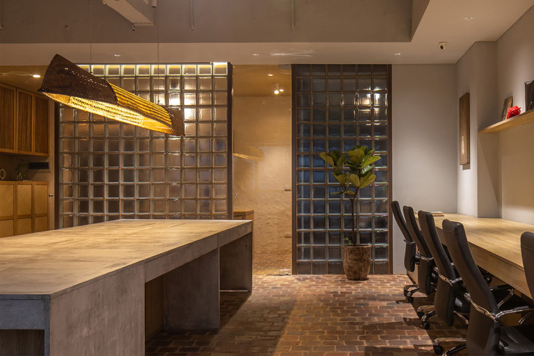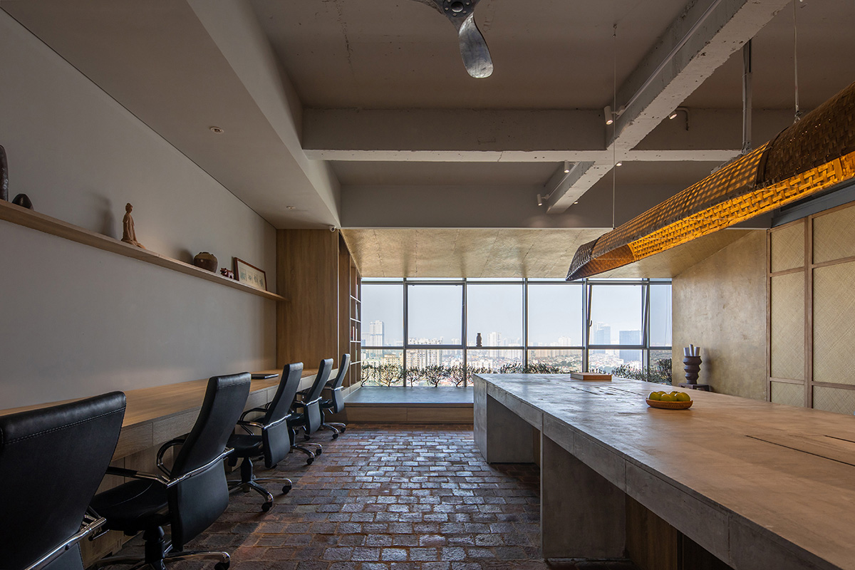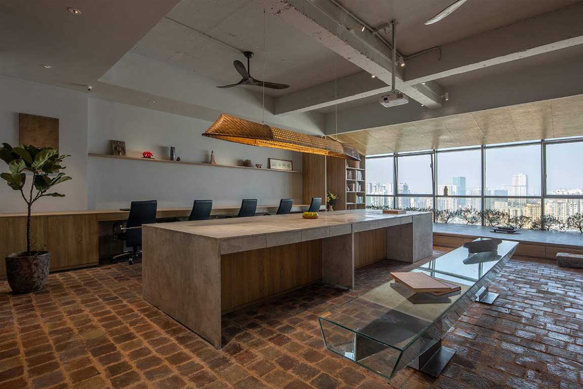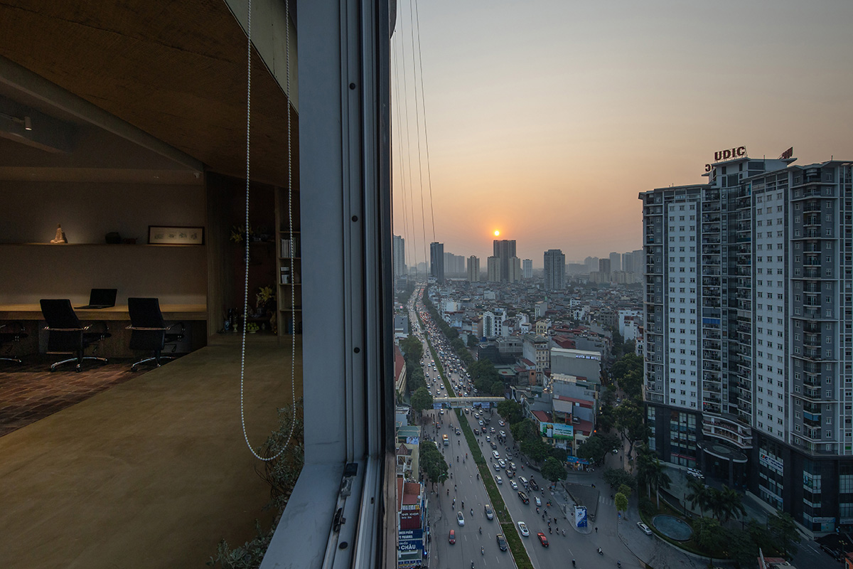 Hà Nội là đô thị nén đang phát triển mạnh mẽ cùng với đó kéo theo sự biến mất của nhiều làng nghề thủ công. Nhằm phát huy giá trị truyền thống trong kiến trúc đương đại, chúng tôi đã sử dụng các chất liệu quen thuộc như: Gạch gốm, giấy dó, tre đan và cói ép. Tất cả đó đã tạo lên một văn phòng mộc mạc, giản dị phản phất nét Á Đông. Đằng sau mong muốn phát huy bản sắc văn hóa dân tộc, chúng tôi còn khuyến kích việc sử dụng các chất liệu xanh thân thiện, mang đến những tác động tích cực cho môi trường.