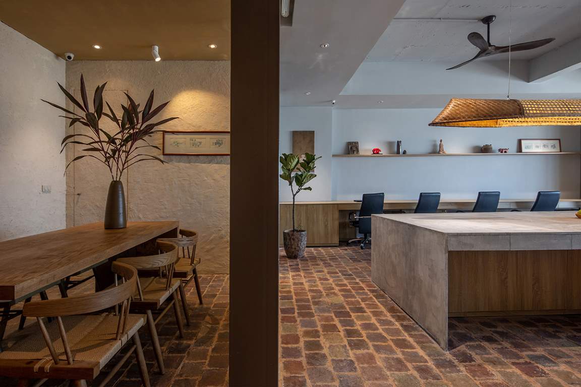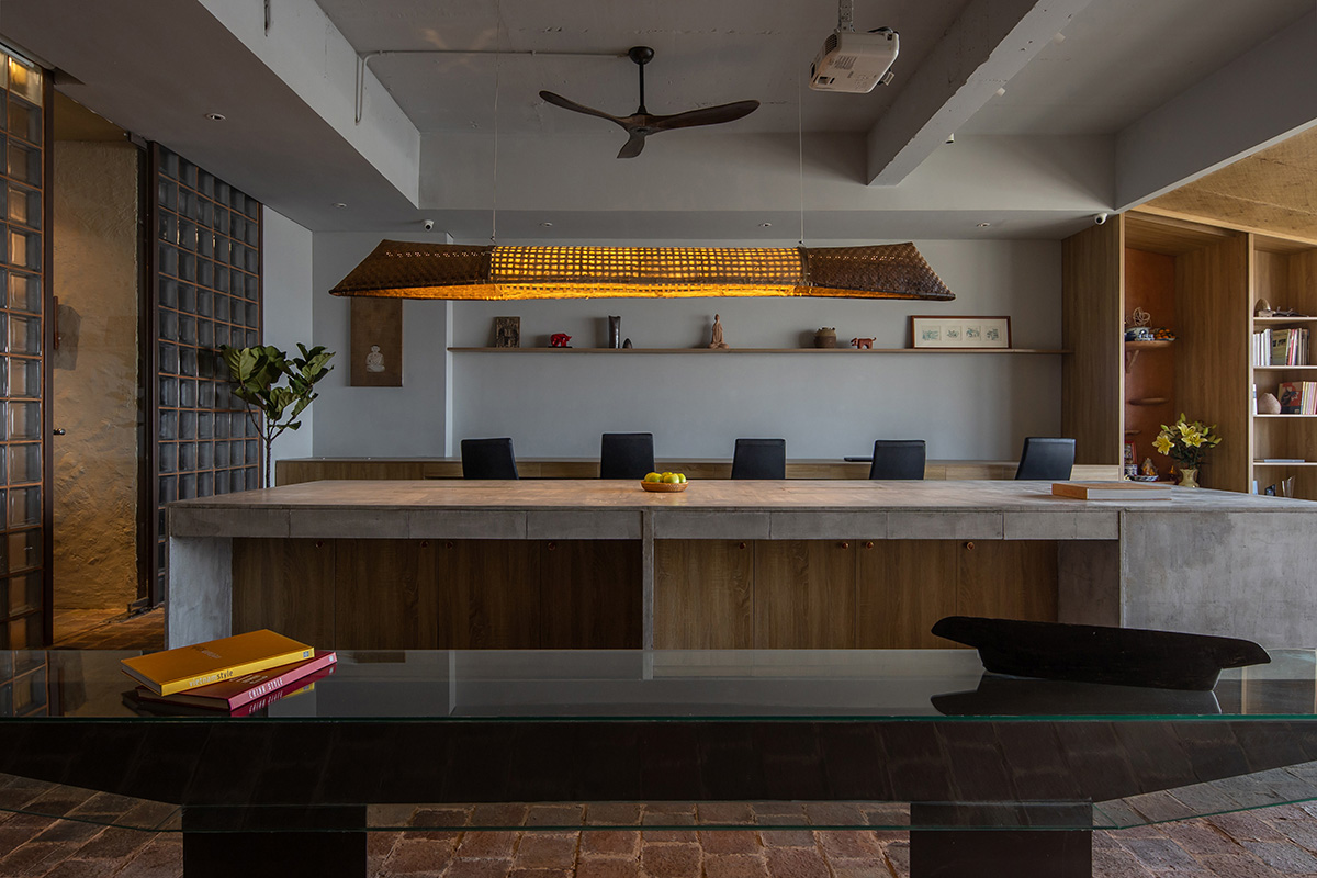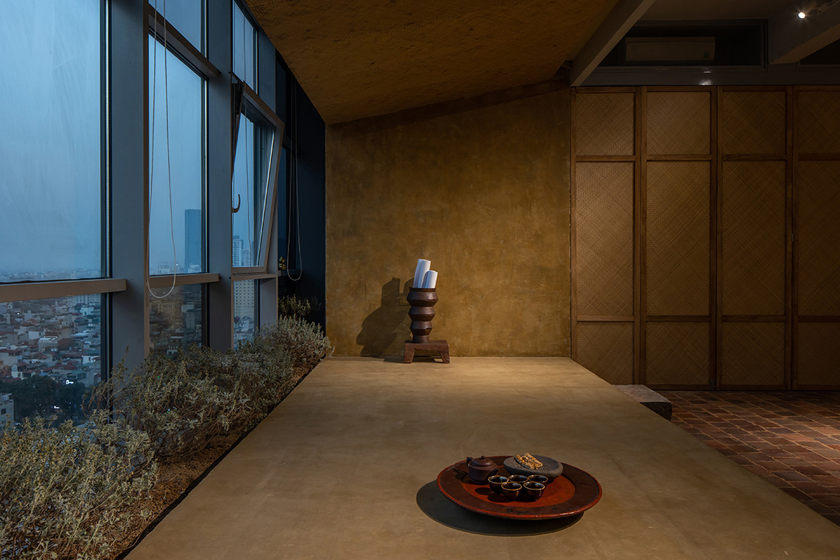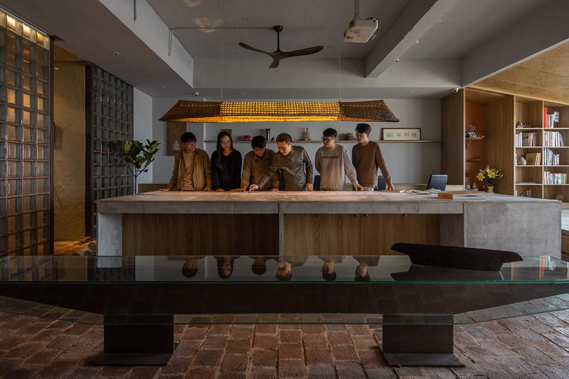 Hà Nội là đô thị nén đang phát triển mạnh mẽ cùng với đó kéo theo sự biến mất của nhiều làng nghề thủ công. Nhằm phát huy giá trị truyền thống trong kiến trúc đương đại, chúng tôi đã sử dụng các chất liệu quen thuộc như: Gạch gốm, giấy dó, tre đan và cói ép. Tất cả đó đã tạo lên một văn phòng mộc mạc, giản dị phản phất nét Á Đông. Đằng sau mong muốn phát huy bản sắc văn hóa dân tộc, chúng tôi còn khuyến kích việc sử dụng các chất liệu xanh thân thiện, mang đến những tác động tích cực cho môi trường.