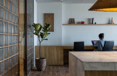 Afa Office nằm trên tầng 20 của một tòa nhà văn phòng với diện tích khiêm tốn. Chúng tôi hạn chế sử dụng vách cứng để không gian có tính kết nối và sử dụng linh hoạt, trong từng trường hợp các không gian có thể đóng mở để phục vụ cho những công năng khác nhau.Chúng ta có thể cảm nhận được sự thay đổi không gian qua cote trần và việc sử dụng vật liệu. Ứng dụng các vách mềm như gạch kính và cửa xếp giúp ánh sáng tự nhiên chuyển tiếp mềm mại và trải rộng khắp phòng làm việc.Trong môi trường mới này, mọi người có thể cảm nhận được nhau từ mọi vị trí trong văn phòng.