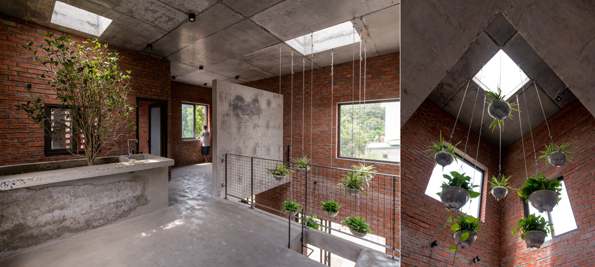 Trước hết đó là một hình thức bên ngoài lạ mắt & đơn giản đến trơ trụi: hình khối lập phương (7m x 7m x 7m), tường gạch không trát, không ô văng, mái vẩy, không logia,z ban công, không có chi tiết. Thứ hai là một cấu trúc không gian biểu hiện tính hướng nội có phần cực đoan: kết cấu và tường bao được làm cố định ngay từ đầu, nhưng sàn tầng 2 có nhiều khoảng trống mà sau này có thể lấp đầy để cho phép phát triển thêm vào trong. Thứ nữa là cách tổ chức giao thông “không giống ai”: cầu thang chính thì kín đáo nhưng mở ra bên ngoài để mọi người có thể lên thẳng phòng thờ ở tầng 2, còn bên trong nhà lại có thêm thang sắt bám tường để “chui” lên từ bếp.