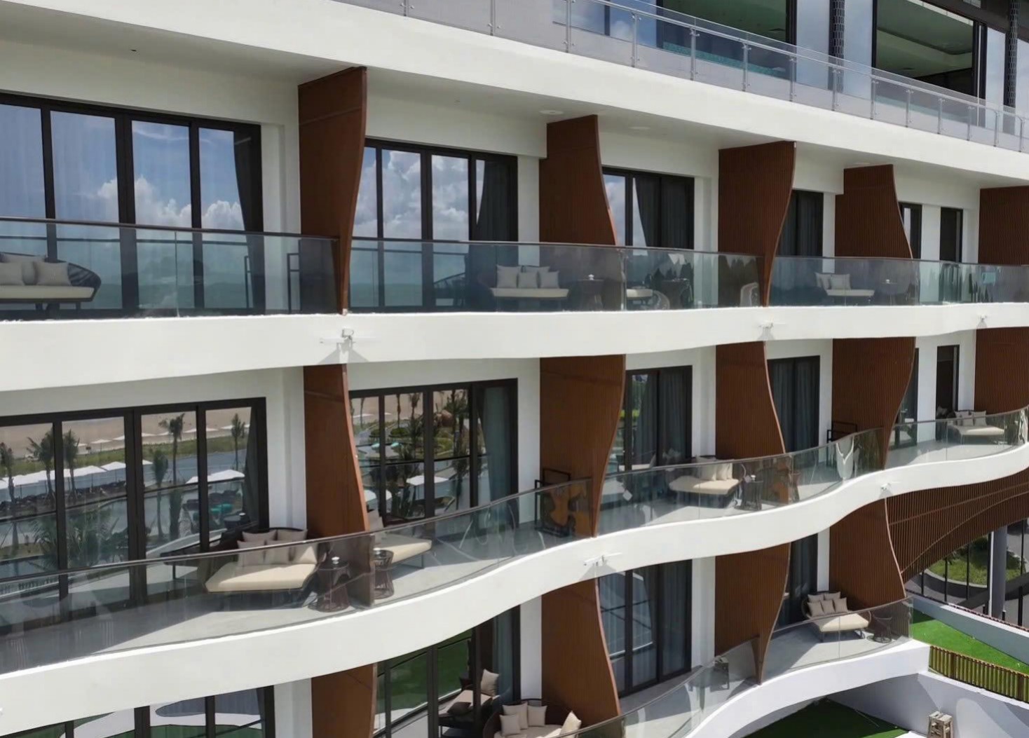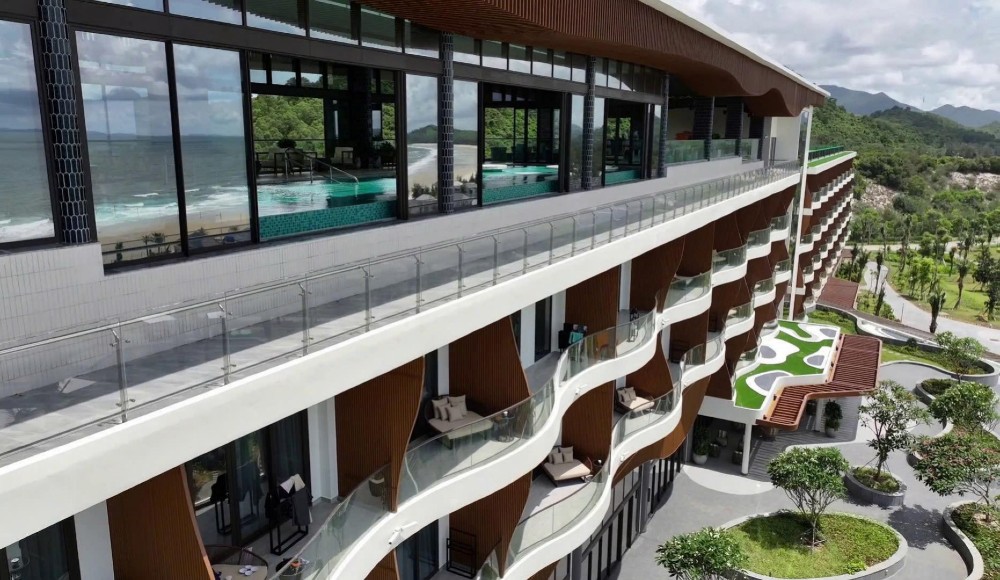 Hơn nữa, với sự linh hoạt và chủ động trong sản lượng cũng như nguồn cung so với kính siêu trắng nhập khẩu, kính Viglacera sản xuất nội địa giúp nhà thi công dễ dàng đáp ứng các hình thái kiến trúc khó như lắp ghép tạo đường cong lượn sóng. Yếu tố này làm tăng tính thẩm mỹ cho công trình, giúp trải nghiệm của khách hàng như đang hòa mình vào những con sóng vỗ về biển cả hay địa hình uốn lượn của những sườn núi xung quanh.