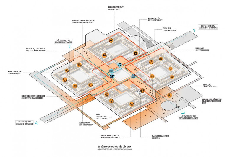 Nhằm bắt kịp tốc độ phát triển của ngành Y tế Thế giới, tại đồ án Bệnh viện Đa khoa Quảng Ninh, chúng tôi đề xuất sự chuyển dịch từ mô hình liên khoa tuyến tính – là mô hình cũ vốn phổ biến tại Việt Nam – sang mô hình Siêu Liên Khoa xoay vòng – đang là xu hướng của những nền Y tế phát triển trên Thế giới hiện nay.