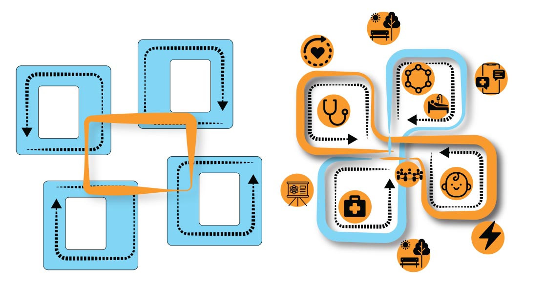 Sơ đồ bên cạnh cho thấy một Siêu Liên Khoa dạng vòng lặp cho phép các nhóm Khoa bộ môn làm việc hiệu quả hơn, trong khi đó, tối ưu được các yếu tố vật lý kiến trúc trong dạng đồ án này.