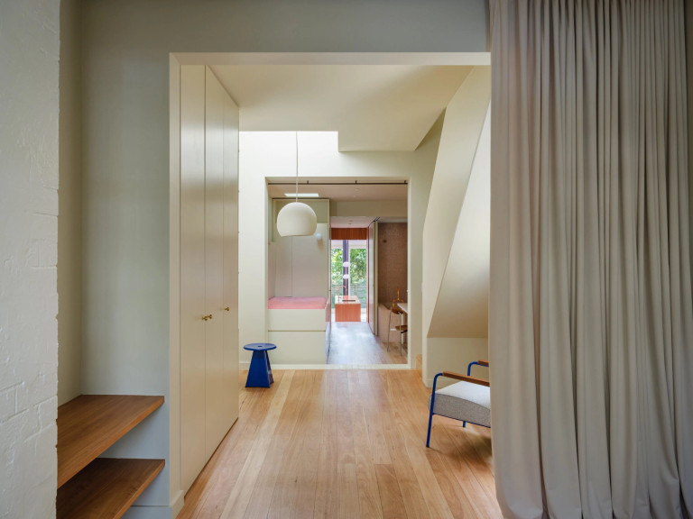 Thông thường, nhà ở gia đình được phân chia rõ ràng theo chức năng gồm phòng để ngủ, phòng khách để sinh hoạt chung, bếp để nấu ăn. Tuy nhiên, ngôi nhà ở Erskineville, Sydney, Australia lại vận hành theo một nguyên lý khác. Gia chủ là người đồng nuôi dưỡng bốn người con. Có lúc anh ấy sống một mình, có lúc cả bốn người đến ở trong ngôi nhà. Vì vậy, KTS cho biết, yêu cầu đặt ra là không gian phải đủ linh hoạt để phù hợp với cả hai tình huống.