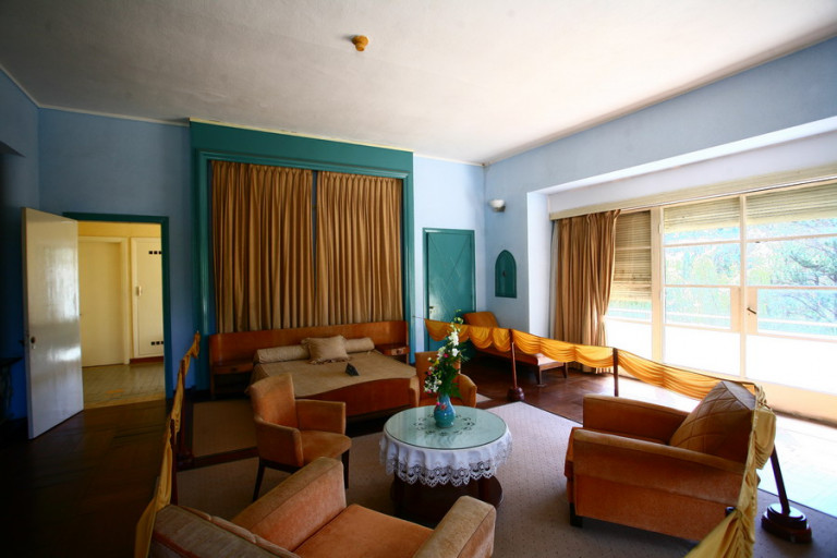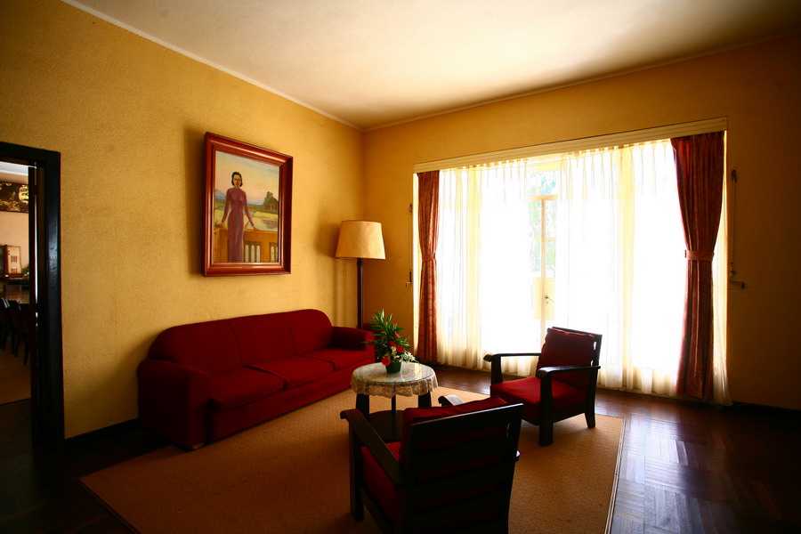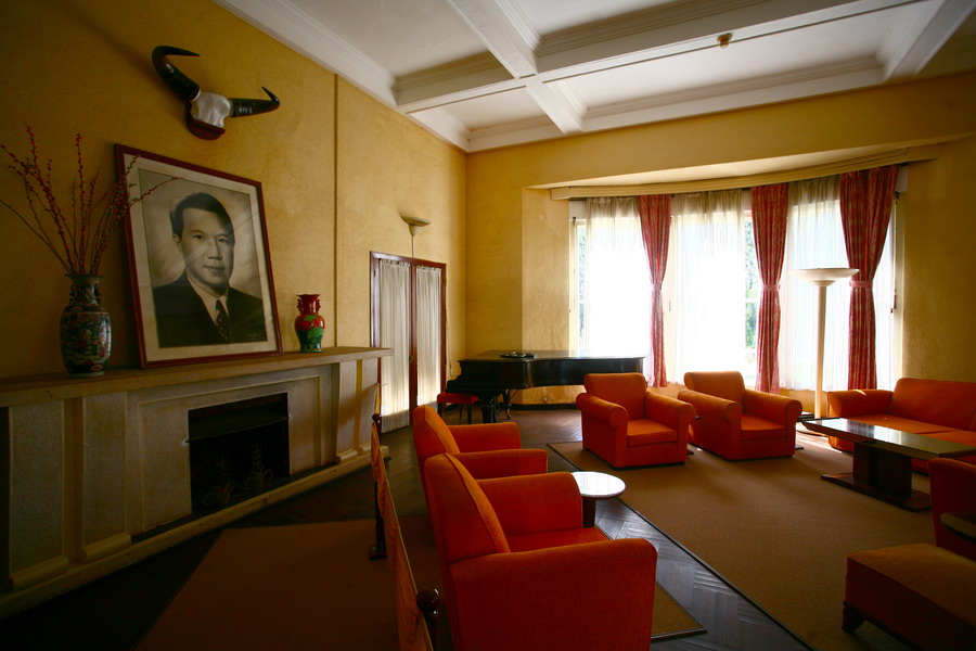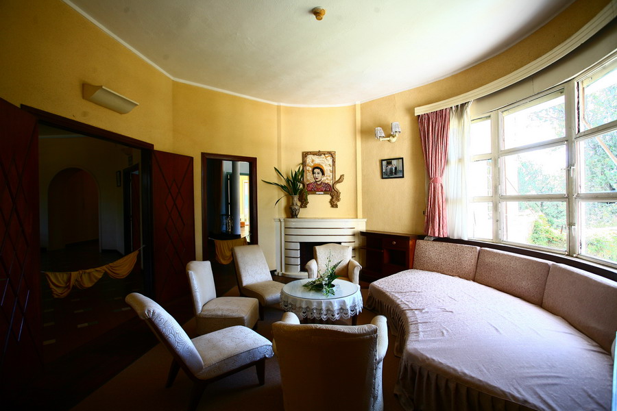 Phòng tiếp khách của vua Bảo Đại. Nơi đây còn lưu giữ chiếc đàn piano mà hoàng hậu Nam Phương và các công chúa từng chơi, cặp sừng Min (trâu rừng) do chính tay Bảo Đại đi săn được tại K’rong Pha.