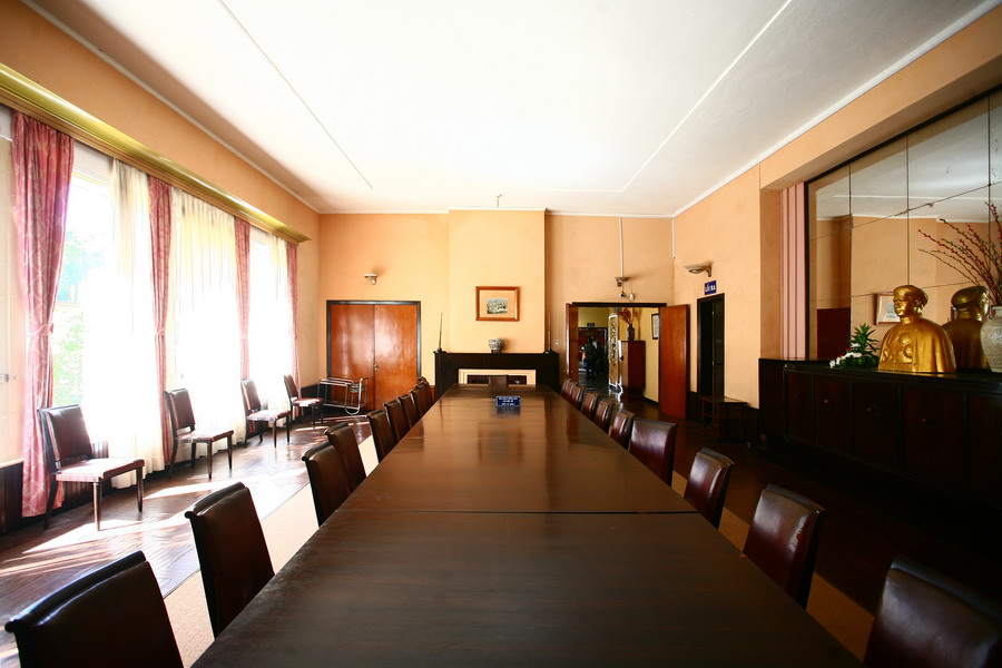 Phòng làm việc của vua Bảo Đại còn lưu giữ những hiện vật như ấn tín quân sự, ngọc tỷ của Hoàng đế, quốc kỳ các nước, tượng của vua Bảo Đại và vua cha Khải Định.