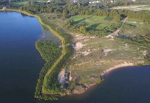 - Hàng rào bẫy cát: Sự xói mòn của các cồn cát và bãi biển đã gây ra bởi các cơn bão làm ảnh hưởng nặng nề đến cơ sở hạ tầng, đất đai, đồng thời còn làm ngập lụt, nhiễm mặn và mất môi trường sống của các loài sinh vật. Hàng rào được làm bằng các thanh gỗ đơn giản có tác dụng hứng cát do gió thổi và lắng đọng ở chân rào. Theo thời gian, cát tích tụ sẽ bao phủ hoàn toàn hàng rào, tạo thành cồn cát. Thảm thực vật ở cồn cát phát triển dày đặc cũng giúp bảo vệ nhà cửa và tài sản khỏi bị muối làm hỏng và bản thân các cồn cát cũng sẽ là các rào chắn bão tố tự nhiên cho các khu dân cư.