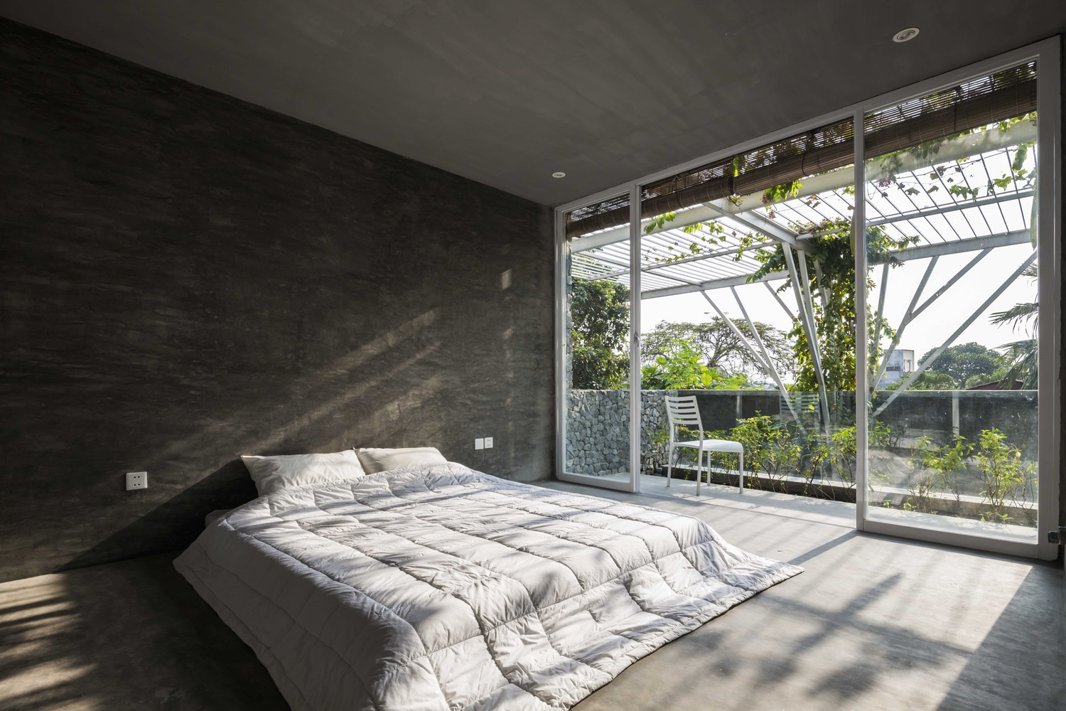 Không gian nghỉ ngơi ở trên lầu nhìn ra một khoản sân thượng riêng tư.