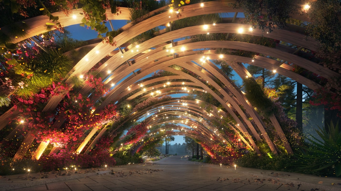 Chiếu sáng con đường đưa cư dân, du khách trở về nhà, kĩ sư chiếu sáng của Isometrix không muốn tạo ra những cấu trúc gây cản trở nên sẽ bố trí đèn trên cây dọc đường và nằm dưới mặt đất giữa những bụi hoa, dọc theo lối đi tạo cảm giác yên bình.