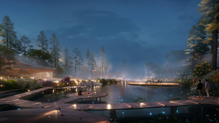 Để tạo nên bức tranh thiên nhiên và kiến trúc hài hoà trong mọi khoảnh khắc, Kengo Kuma bắt tay Isometrix – công ty thiết kế chiếu sáng nổi tiếng toàn cầu đứng sau những công trình ánh sáng biểu tượng thế giới nhờ khả năng kết hợp ánh sáng với kiến trúc, văn hóa và cảm xúc để tạo ra những không gian độc đáo.