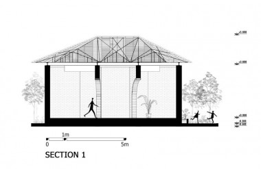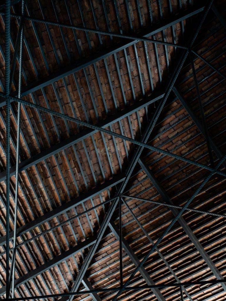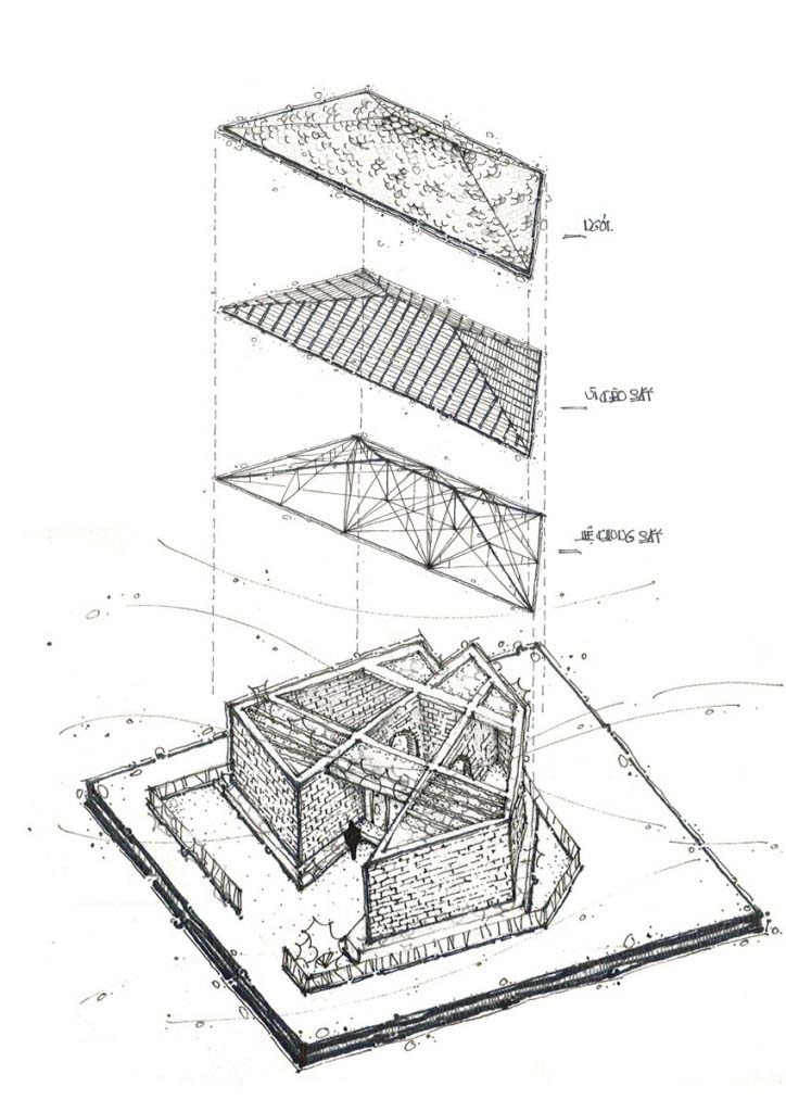 Tất cả đều được che chở bởi hệ thống mái lợp với kiểu dáng truyền thống và mái ngói rêu phong, nhưng được nâng đỡ bằng hệ thống chịu lực có kết cấu hiện đại từ những thanh thép mảnh mai nhưng chắc chắn.