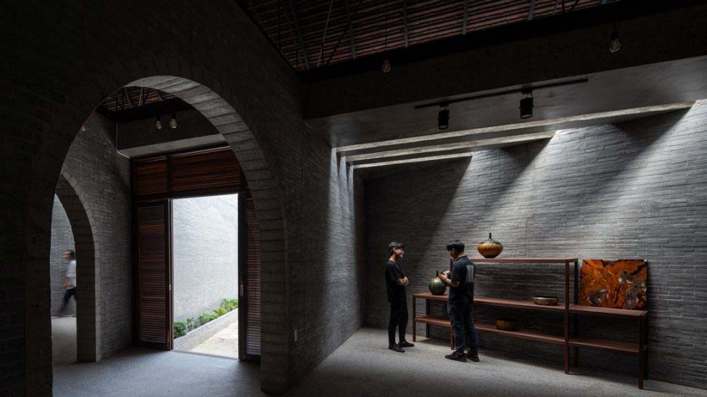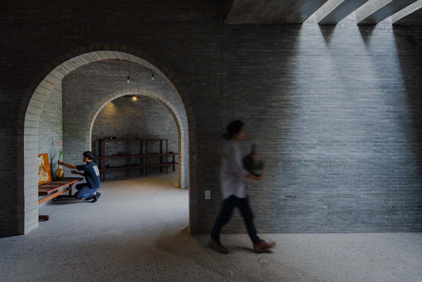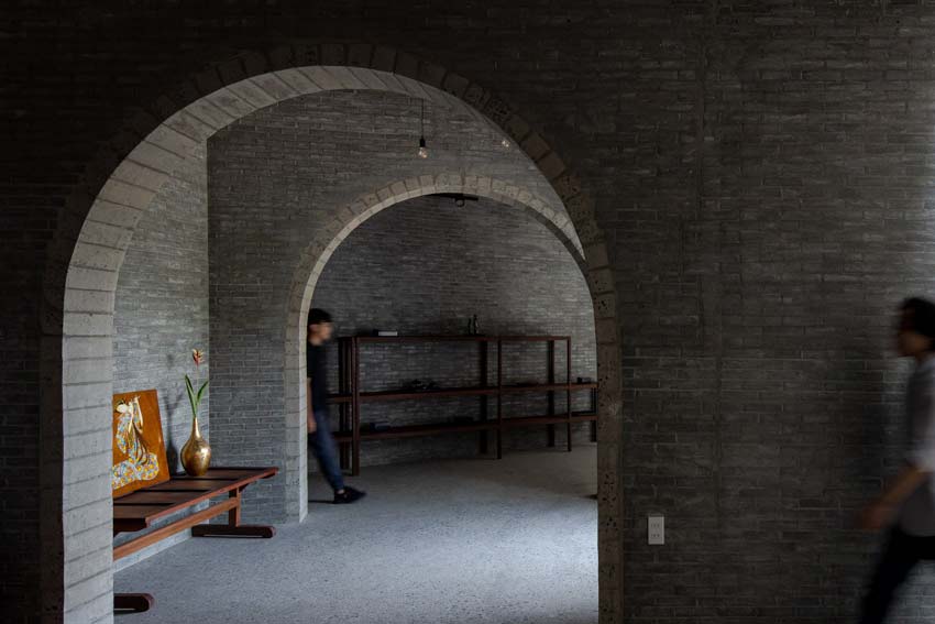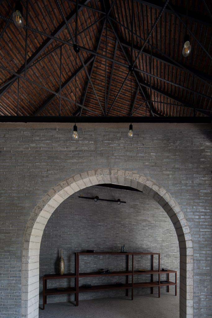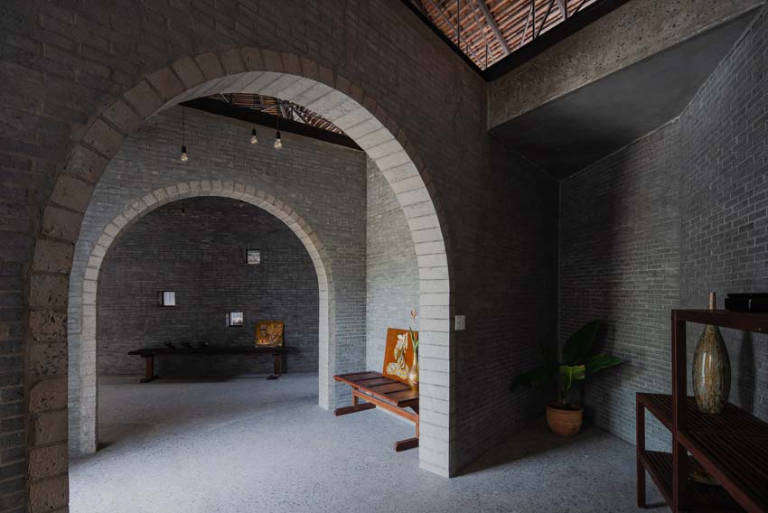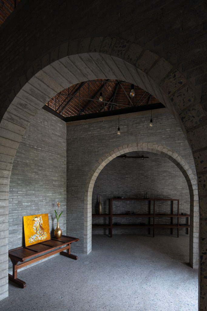 Toàn bộ không gian bên trong được chia thành ba khu vực được kết nối bằng các hành lang là những mái vòm lạnh lẽo và mềm mại nằm lõi bên trong sự giao nhau giữa các khối ngẫu hứng và mạnh mẽ, tạo nên sự nổi bật cho các tác phẩm nghệ thuật thủ công truyền thống.