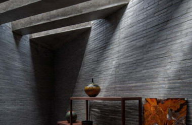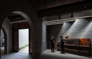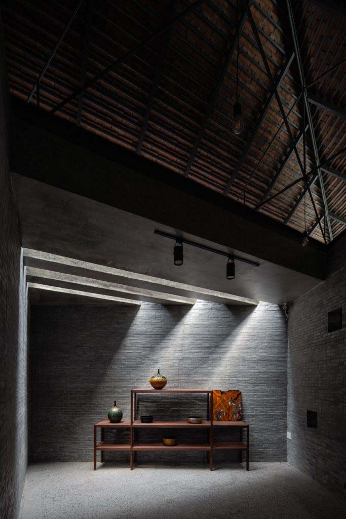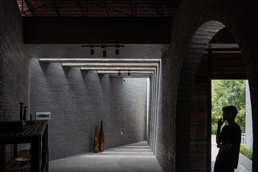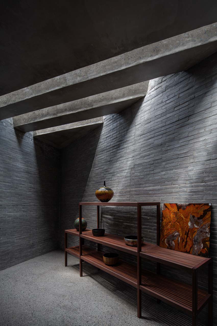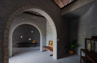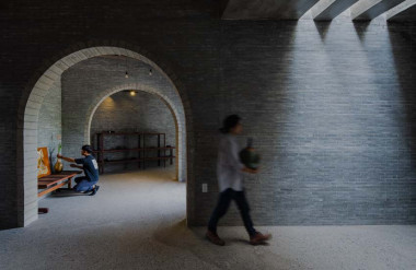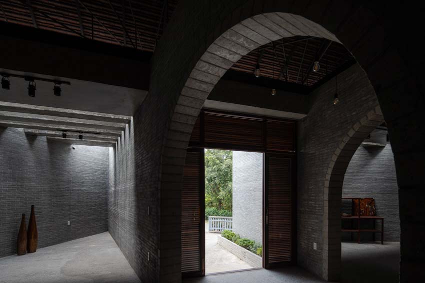 Toàn bộ không gian bên trong được chia thành ba khu vực được kết nối bằng các hành lang là những mái vòm lạnh lẽo và mềm mại nằm lõi bên trong sự giao nhau giữa các khối ngẫu hứng và mạnh mẽ, tạo nên sự nổi bật cho các tác phẩm nghệ thuật thủ công truyền thống.