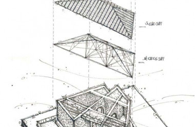 Mục tiêu ban đầu được đặt ra là bảo tồn các yếu tố ban đầu của cấu trúc, các nhà thiết kế đã duy trì mái ngói cũ của ngôi nhà đã bám đầy rêu phong, làm nổi bật giá trị của nó trên nền của một cơ thể mới.