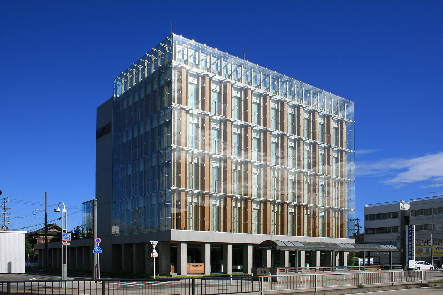 Công trình là trụ sở của một doanh nghiệp có nguồn gốc từ ngành lâm nghiệp, được thiết kế nhân dịp kỷ niệm 60 năm thành lập. Gỗ được sử dụng làm kết cấu chính, tuy nhiên để đáp ứng quy chuẩn xây dựng, GS.TS.KTS Shin Takamatsu đã lựa chọn giải pháp kết cấu lai (hybrid timber): tầng trệt bằng bê tông cốt thép, trong khi các tầng từ 2 đến 5 sử dụng hệ kết cấu gỗ. Mặt đứng sử dụng hệ façade kính hai lớp (double-skin glass) trong suốt, được nghiên cứu nhằm tôn vinh tối đa vẻ đẹp của công trình.