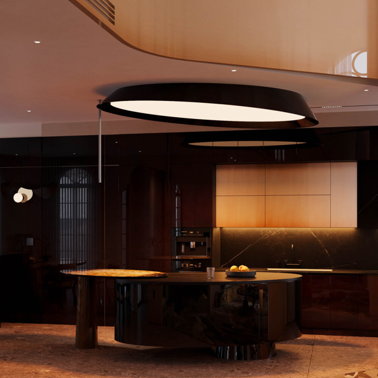 Toàn bộ không gian phòng ăn – bếp không được thiết kế như một khu vực sinh hoạt thuần túy, mà như một tổng thể giao thoa giữa kiến trúc đương đại và nghệ thuật thủ công truyền thống. Sơn mài và khảm sừng không bị đặt vào vai trò “điểm nhấn phụ”, mà giữ vị trí linh hồn của không gian, dẫn dắt cảm xúc người sử dụng qua ánh sáng, chất liệu và sự chuyển động tinh tế của bề mặt. Ở đây, nghệ thuật không được trưng bày – mà được sống cùng.