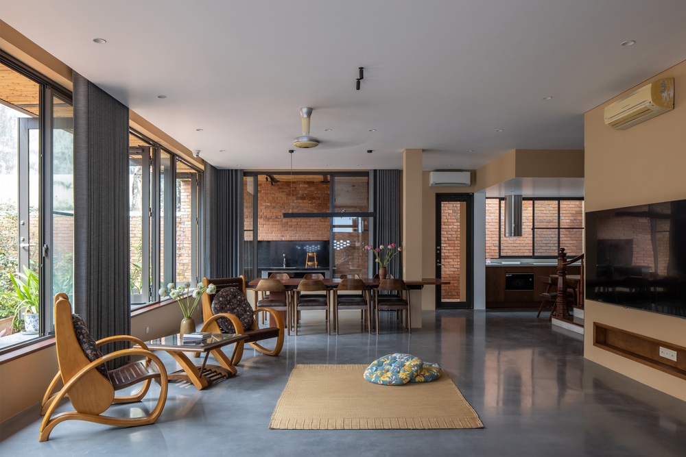 Ngôi nhà được ưu tiên với việc giữ lại cấu trúc chính và tận dụng các vật liệu cũ tại chỗ. không chỉ tiết kiệm chi phí mà đây như một phần ký ức của các giai đoạn sống được nối tiếp và chồng lớp lên nhau. Một công việc đơn giản nhưng giúp người sử dụng thêm trân trọng những giá trị trong cuộc sống hàng ngày.
