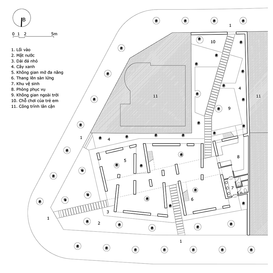 Cách không xa khu công nghiệp lớn đầy ô nhiễm, công trình nằm trong khu đô thị mới đang hình thành với mật độ xây dựng cao ở thị trấn Đồng Văn, tỉnh Hà Nam – đây là một không gian mở phục vụ cộng đồng, tập trung vào khía cạnh văn hóa và nghệ thuật theo định kỳ, thường nhật là không gian café.