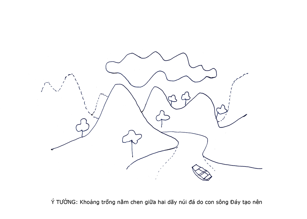 Ý tưởng thiết kế: Khoảng trống nằm chen giữa hai dãy núi đá do con sông Đáy tạo nên
