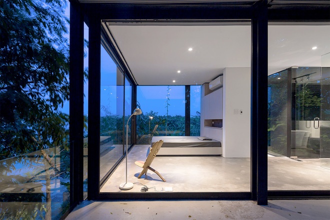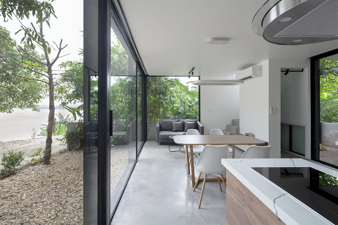 Thiết kế vách kính táo bạo giúp cho ngôi nhà thực sự hoà mình vào thiên nhiên.