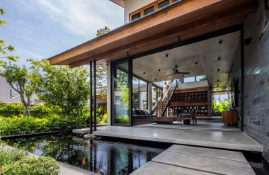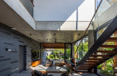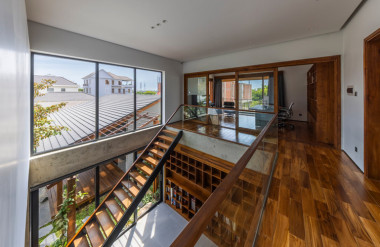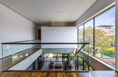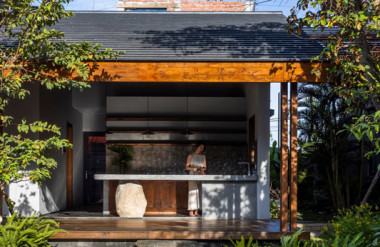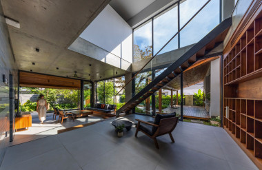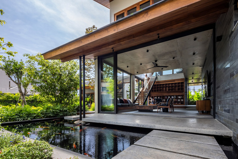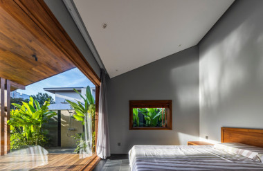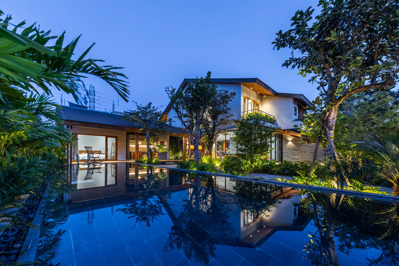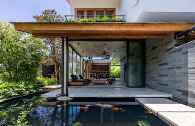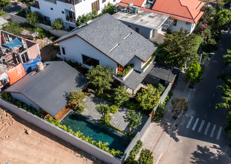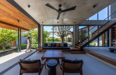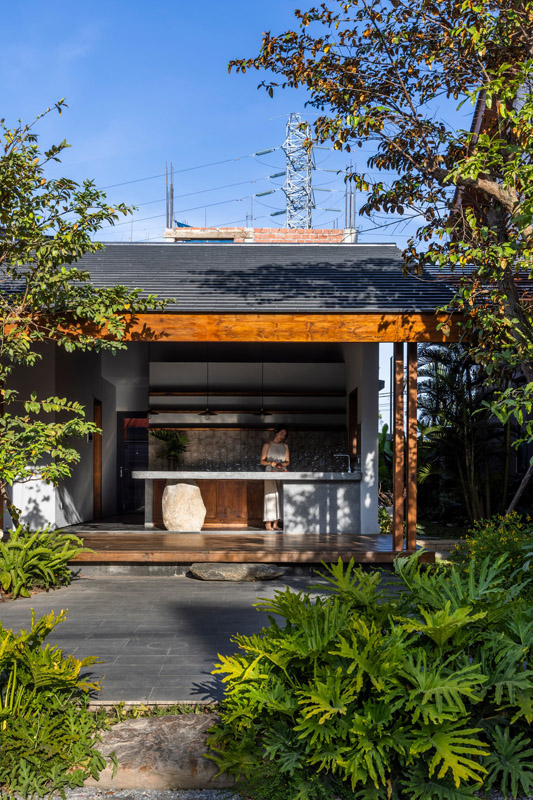 Từ những gửi gắm ấy, ý tưởng về OM House dần thành hình với cấu trúc hai khối độc lập gồm nhà chính và nhà vườn, thống nhất trong ngôn ngữ thiết kế đương đại. Hai khối nhà ấy đối thoại qua những không gian mở và dung hoà nhờ khoảng vườn xanh mướt.