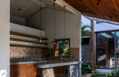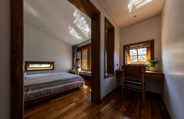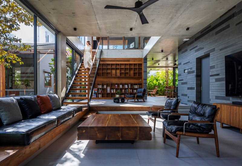 Vẻ đẹp của OM House còn nằm ở việc tôn vinh tính nguyên bản của vật liệu. Sự thô mộc của trần bê tông, nét kiên định của tường đá và hơi ấm của gỗ tự nhiên… Mỗi vật liệu đều mang trong mình một hồi ức, một câu chuyện riêng khi kết hợp lại, tạo nên một không gian sống tràn đầy năng lượng, nơi con người và thiên nhiên giao hòa.