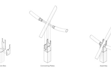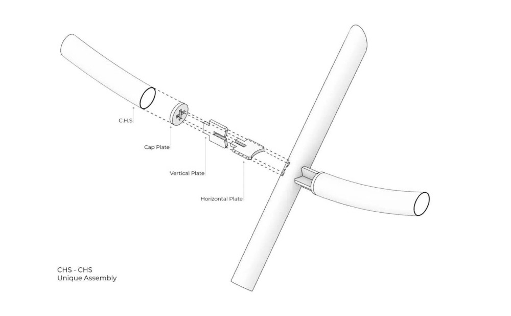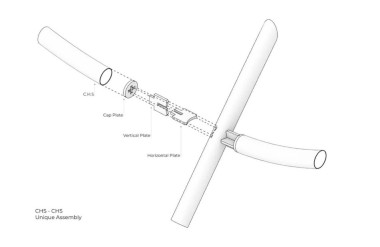 Một điểm nổi bật khác trong thiết kế là việc sử dụng triệt để các vật liệu lắp ghép sẵn. Phần lõi cấu trúc mái nhà được dựng tại công trường từ những khối cấu trúc lắp ghép sẵn và kỹ thuật xây dựng liên quan đến việc định hướng các tấm nối riêng biệt tại mỗi giao điểm của các đoạn rỗng tròn, dọc theo trục X và Y. Để đạt được độ cong hoàn hảo, các kỹ sư đã tính toán tỉ mỉ độ cao của các điểm nối được lắp ghép và lắp ráp chúng chính xác. Bên ngoài, lớp vỏ bê tông cốt thép bao trọn lấy phần khung kim loại, tạo nên một tổng thể vững chắc.