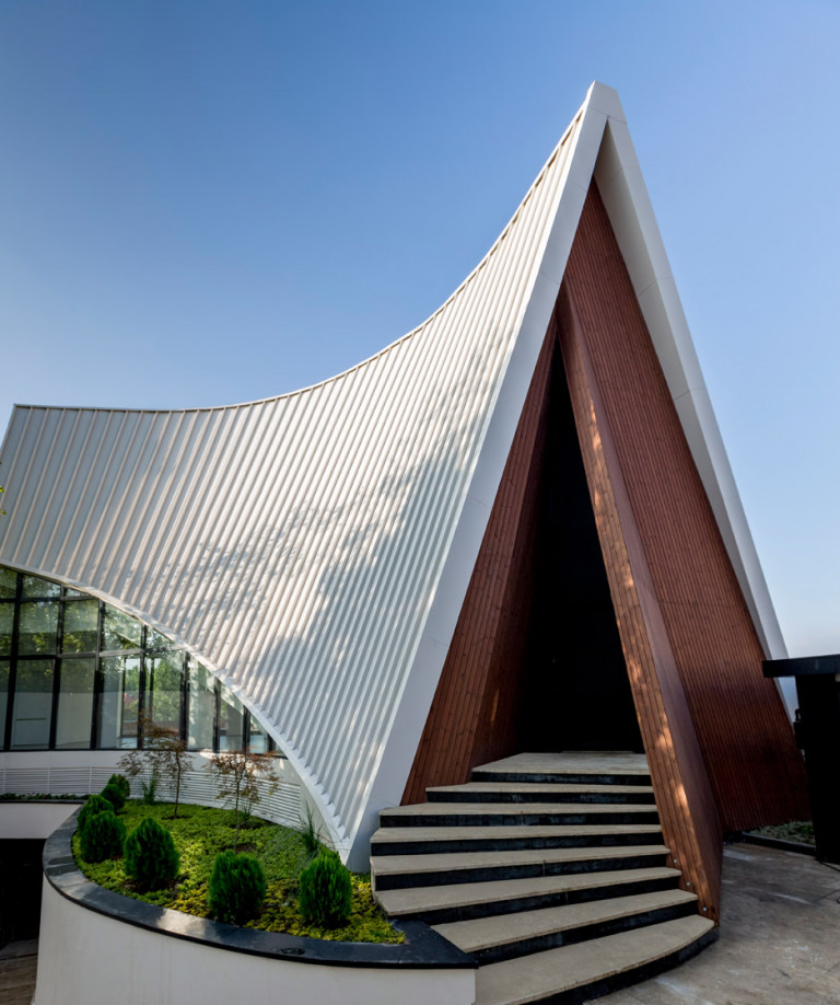 Kiến trúc ngôi nhà có sự kết hợp giữa cấu trúc chữ A với những đường cong ấn tượng. Mái nhà dốc là nét đặc trưng của những công trình phía bắc Iran.