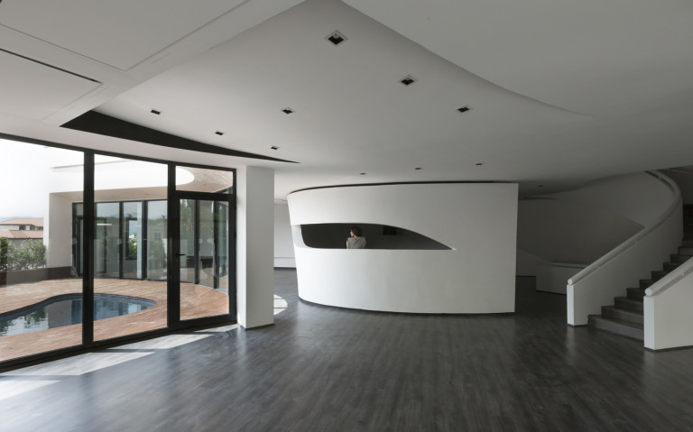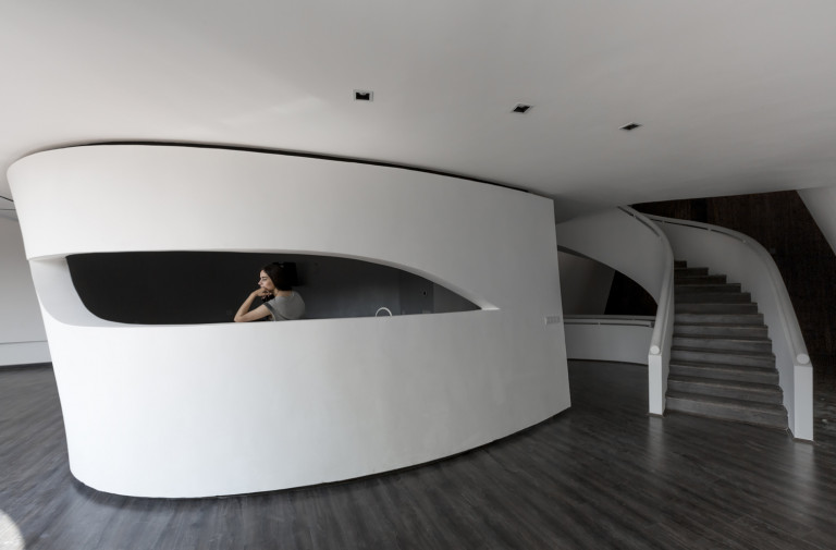 Vào không gian trong, điểm nhấn lại là những đường cong mềm mại và cách bố trí độc đáo. Các bức tường, phòng, cầu thang, vách ngăn và cả mái nhà đều cong.