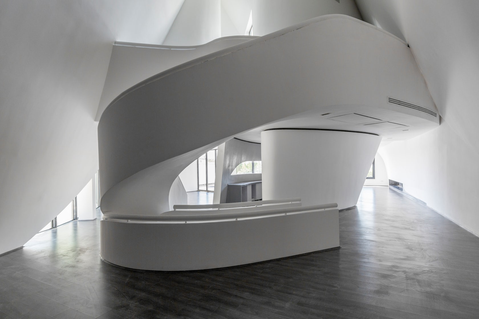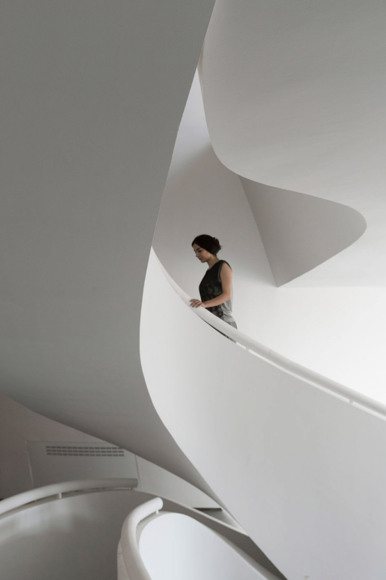 Cầu thang xoắn ốc cũng là điểm nổi bật tạo nên một tác phẩm điêu khắc trừu tượng khổng lồ.