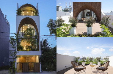 Ngôi nhà tạo điểm nhấn nổi bật với vòm cửa lớn độc đáo dọc mặt tiền. Vào ban đêm, căn…