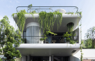 Ngỡ ngàng nhà khối hộp lấy cây xanh làm họa tiết trang trí