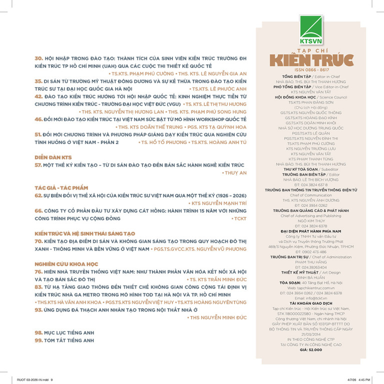 Trân trọng giới thiệu với bạn đọc Tạp chí Kiến trúc số 03/2026!