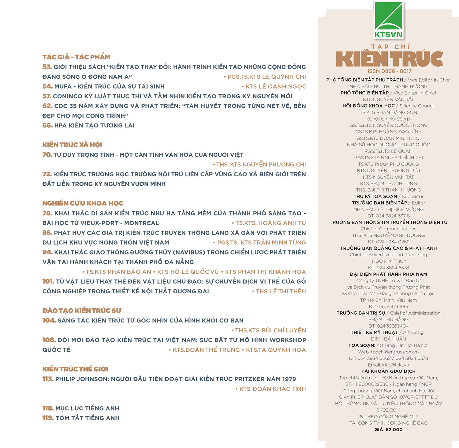 Với tinh thần ấy, trong số Tạp chí đặc biệt này, sự hiện diện của các kiến trúc sư, nhà thiết kế và các chuyên gia nghiên cứu, sẽ cùng đánh thức những không gian tiềm năng, đem tới sức sống mới, tạo ra những giá trị mới, góp phần chuyển hóa di sản thành nguồn lực sống của nền kinh tế sáng tạo… – Để di sản không chỉ là một công trình kiến trúc mà sẽ trở thành một không gian sáng tạo, một điểm đến truyền cảm hứng cho tương lai.